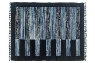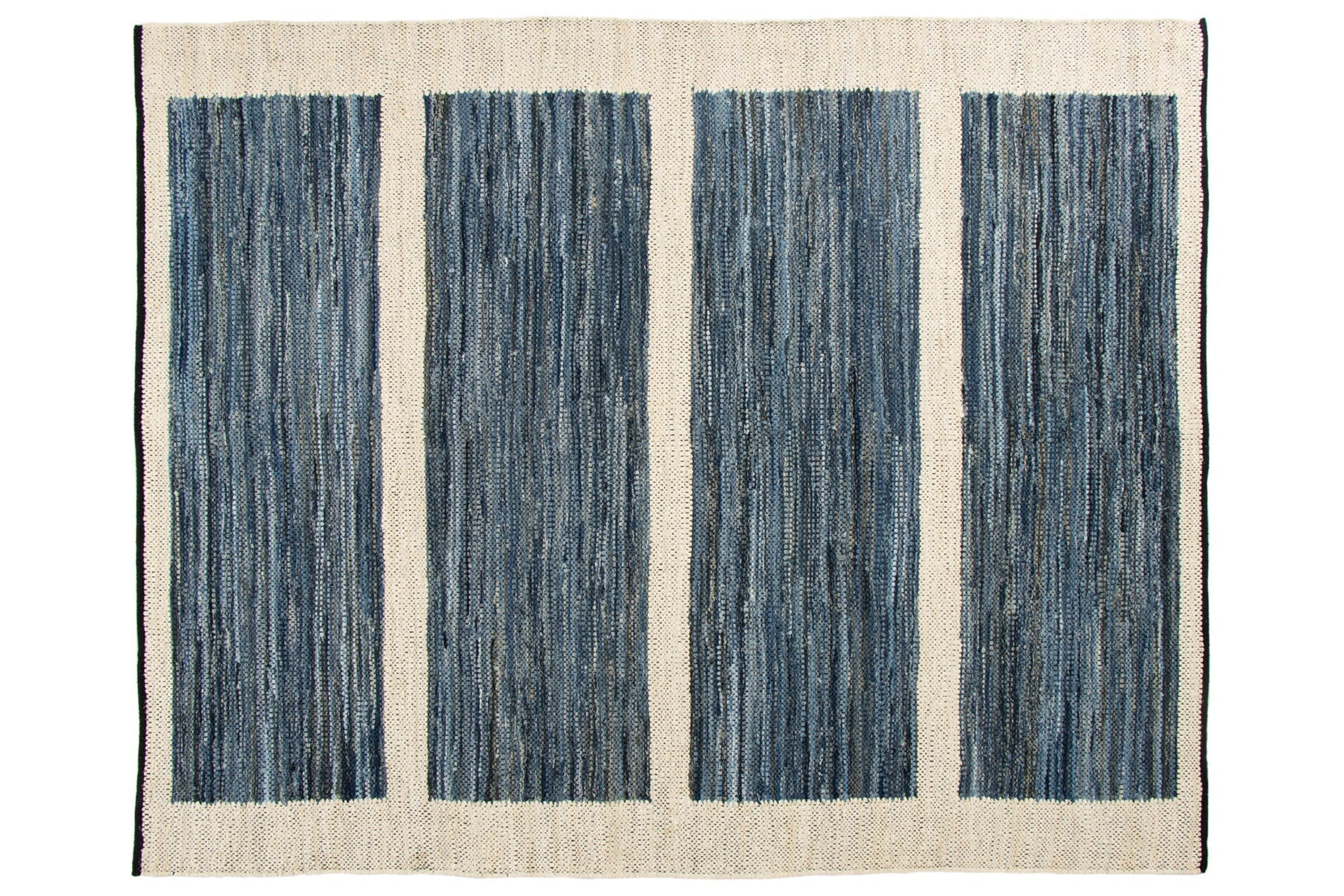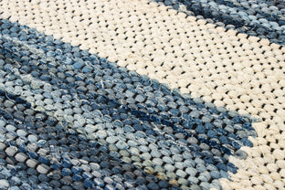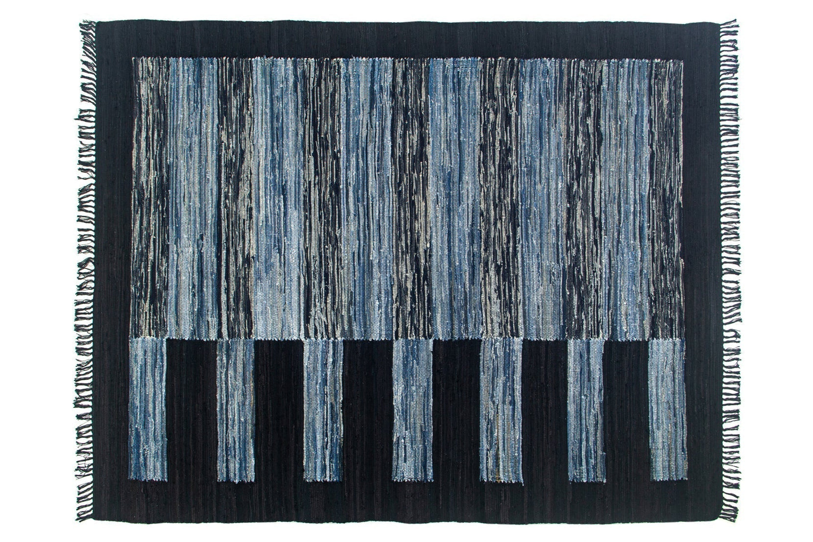 Handwoven flatweaves of recycled denim, the Denim Collection drapes beautifully-like your best-fitting pair of jeans. And just like your favorite jeans, they're washable. Woven in a melange of blues, their simple geometric shapes have a faint 1920s influence; a little bit of art deco meets Georgia O'Keefe's Abiquiu casita. There's a reason denim is a wardrobe staple: it's affordable, durable, good-looking, and versatile, and these rugs are no exception. Plus, textile remnants which would have ordinarily languished in a landfill are given a new life.