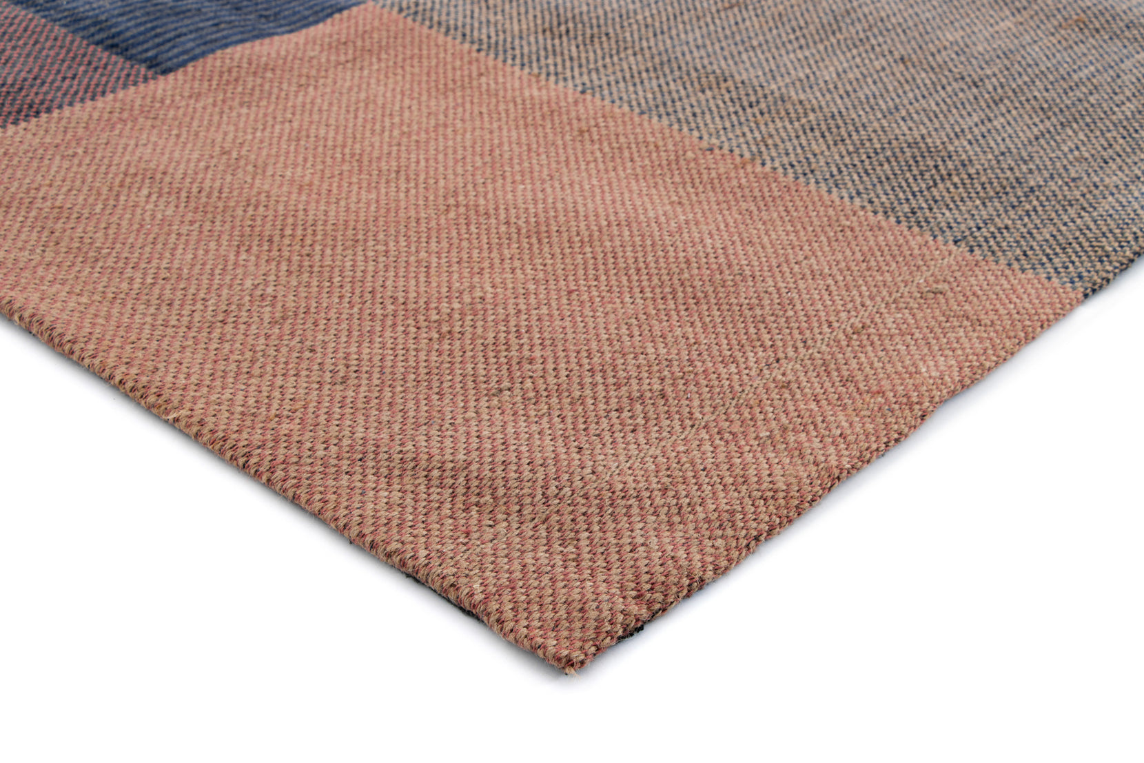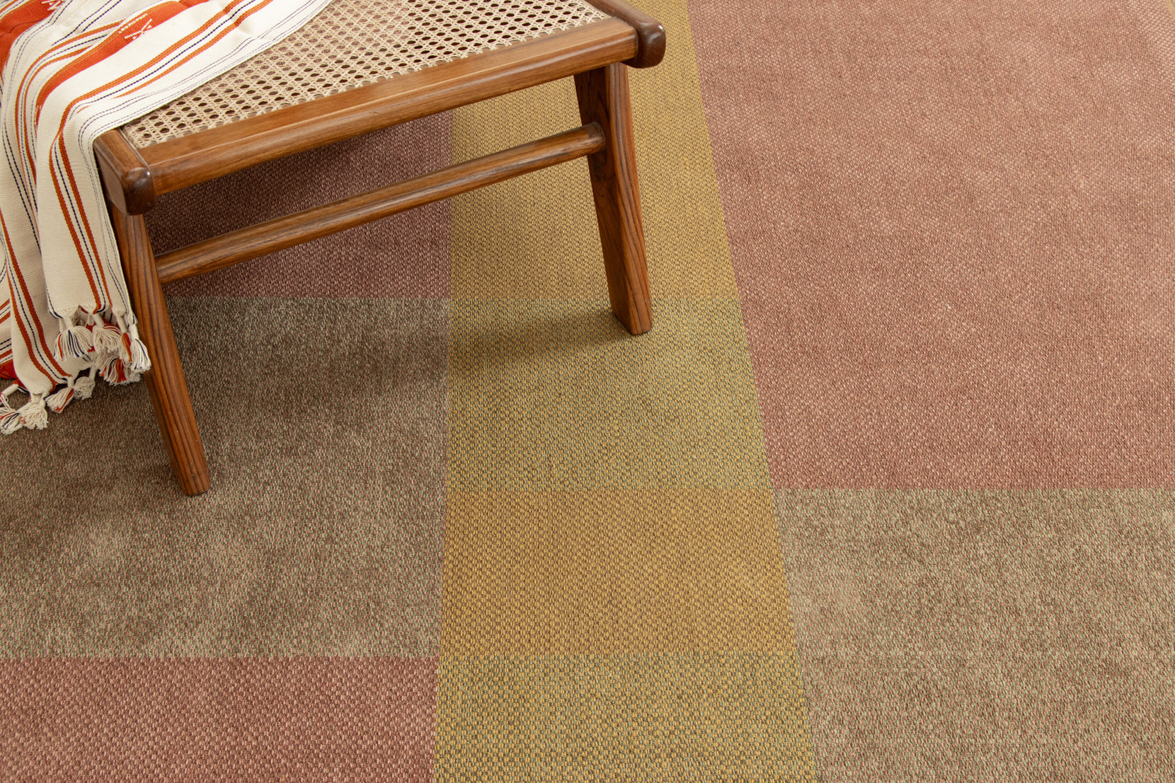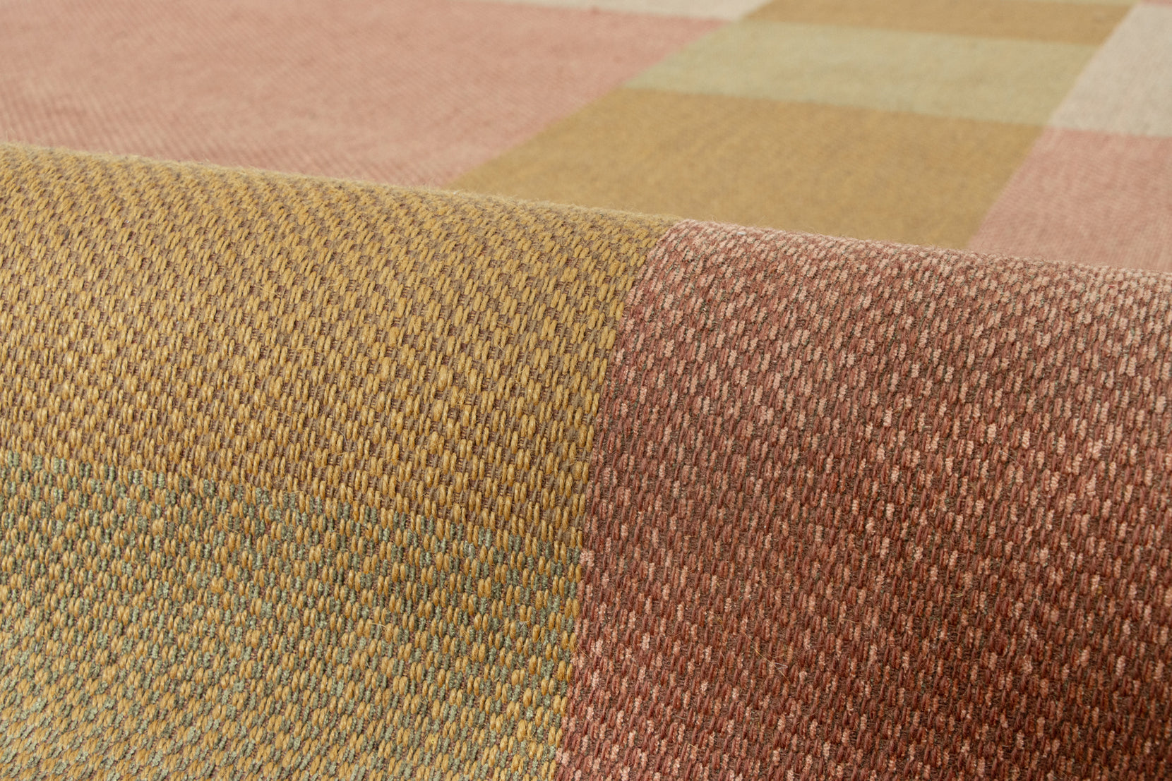 For our Reveal rugs, we played around with overlapping layers. Like with layers of paint, you can catch just a glimpse of both the colors in the intersection where they meet. To translate this into a weave, we used contrasting colors, focusing on the interaction of warp and weft. Named for Zion's sedimentary rock layers, Kaibab and Chinle have a kind of abrash effect, which on closer inspection is actually a micro-check pattern created by the movement of the warp and weft. Moenave and Kayenta have a slightly-less-micro-check pattern, where the interaction of colors is a bit more crisp.