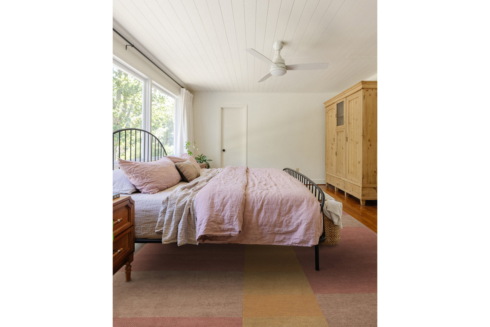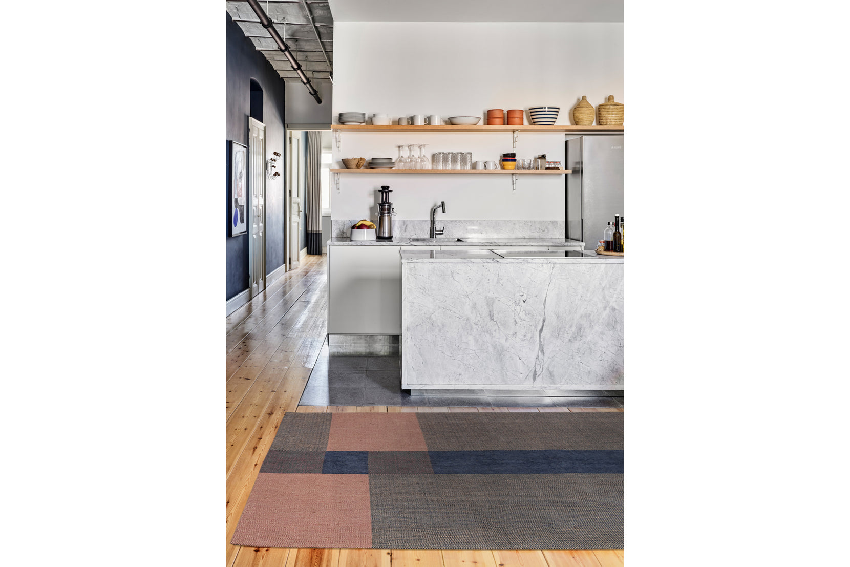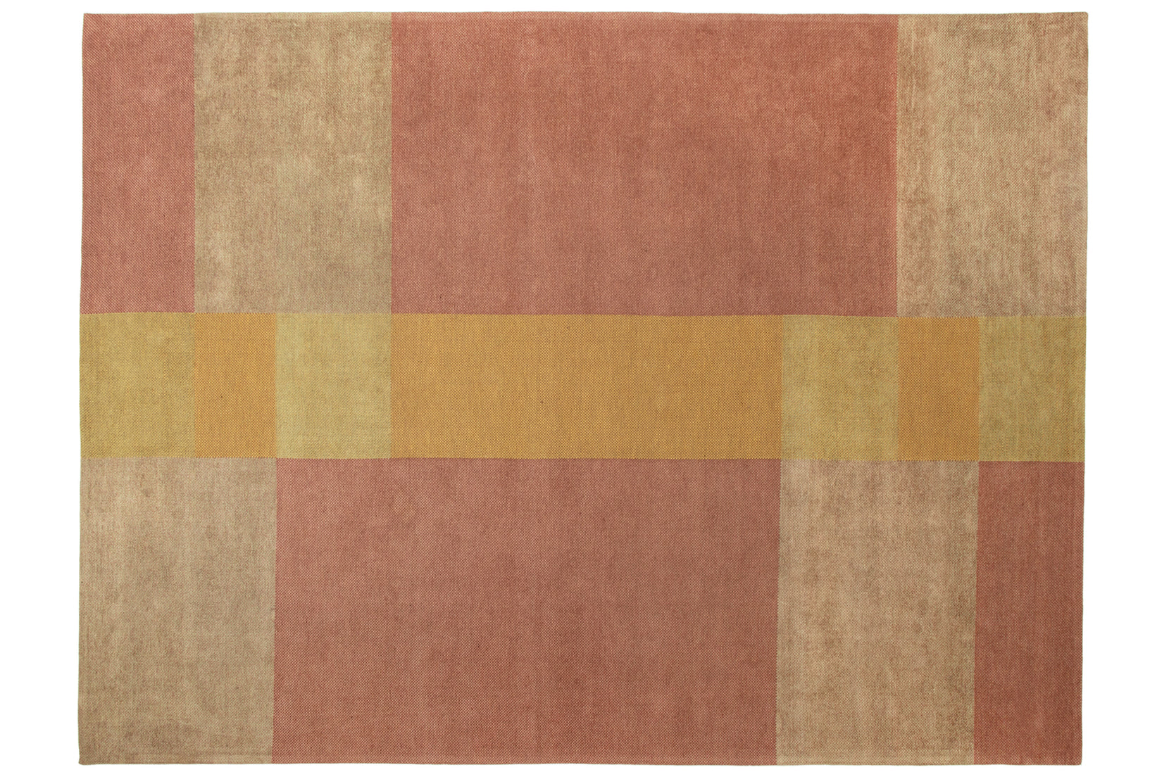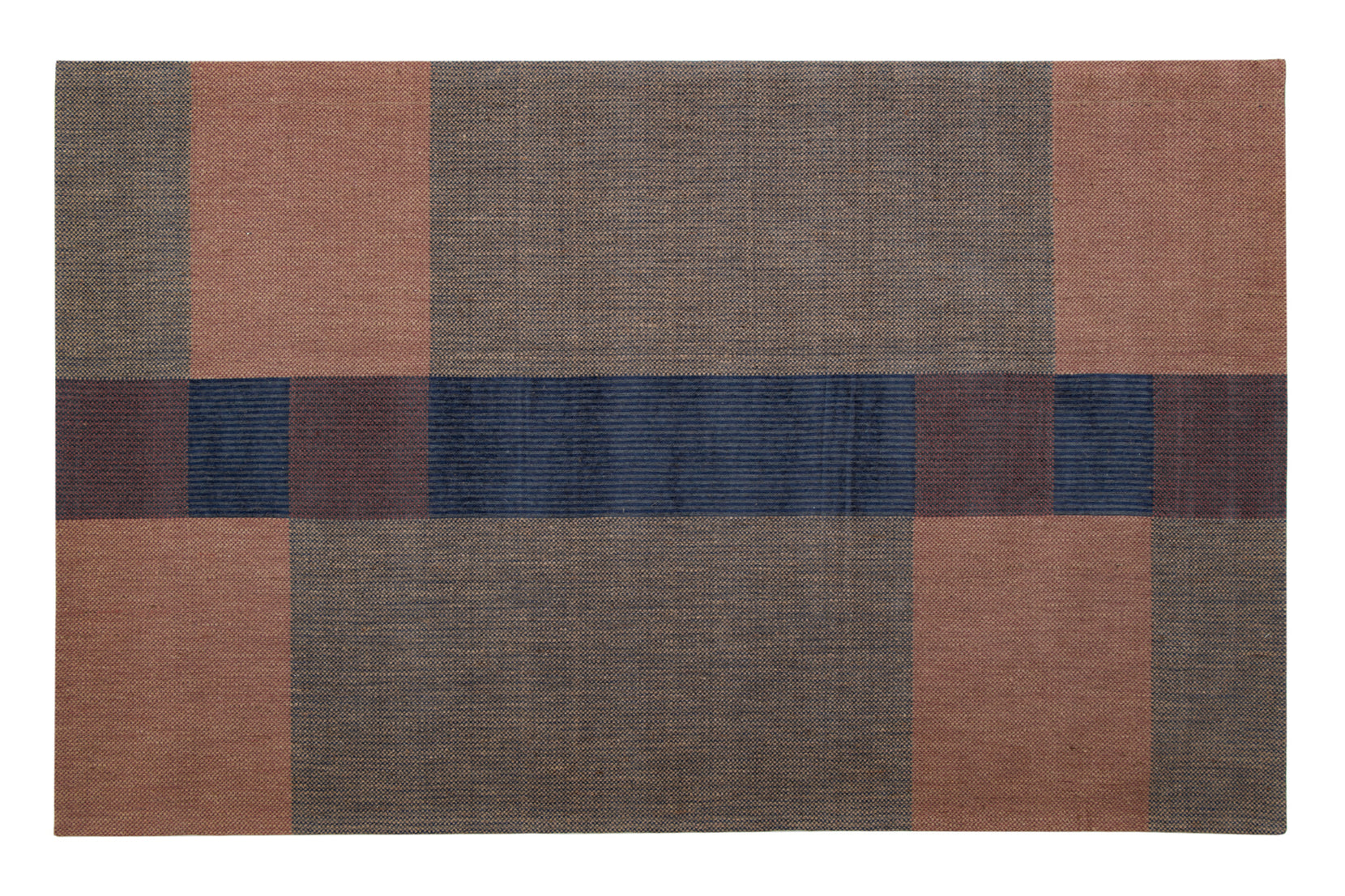 For our Reveal rugs, we played around with overlapping layers. Like with layers of paint, you can catch just a glimpse of both the colors in the intersection where they meet. To translate this into a weave, we used contrasting colors, focusing on the interaction of warp and weft. Named for Zion's sedimentary rock layers, Kaibab and Chinle have a kind of abrash effect, which on closer inspection is actually a micro-check pattern created by the movement of the warp and weft. Moenave and Kayenta have a slightly-less-micro-check pattern, where the interaction of colors is a bit more crisp.