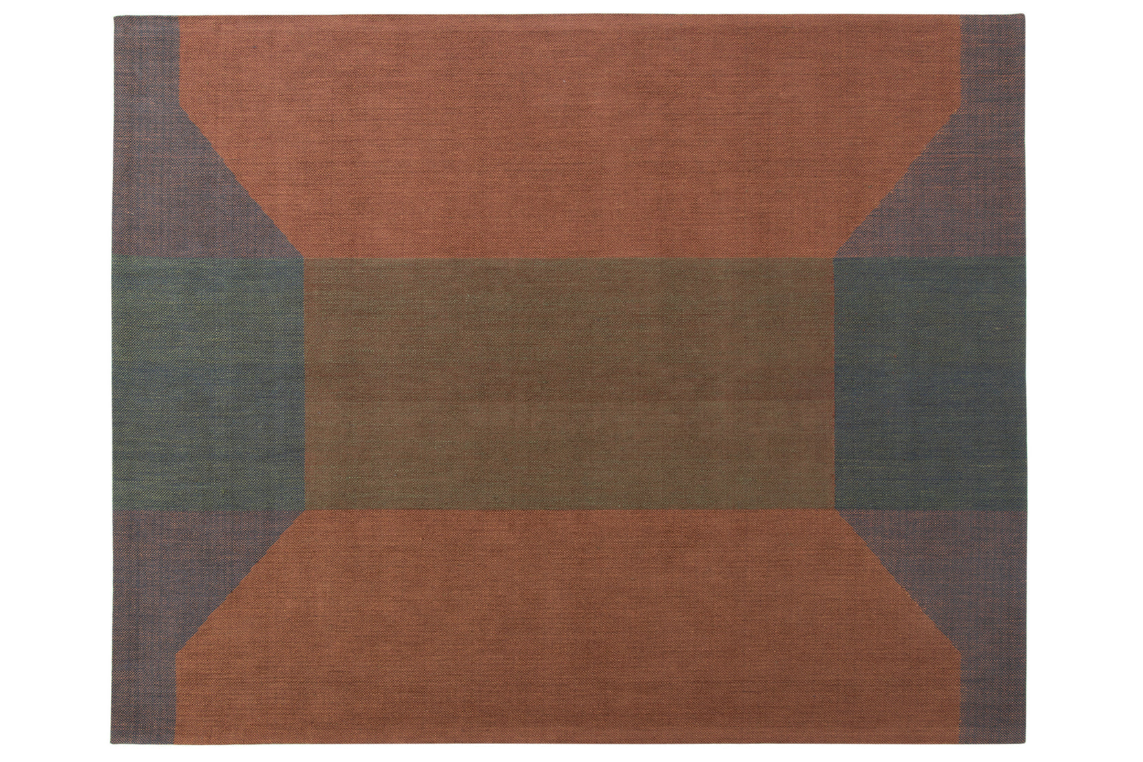 For our Reveal rugs, we played around with overlapping layers. Like with layers of paint, you can catch just a glimpse of both the colors in the intersection where they meet. To translate this into a weave, we used contrasting colors, focusing on the interaction of warp and weft. Named for Zion's sedimentary rock layers, Kaibab and Chinle have a kind of abrash effect, which on closer inspection is actually a micro-check pattern created by the movement of the warp and weft. Moenave and Kayenta have a slightly-less-micro-check pattern, where the interaction of colors is a bit more crisp.
