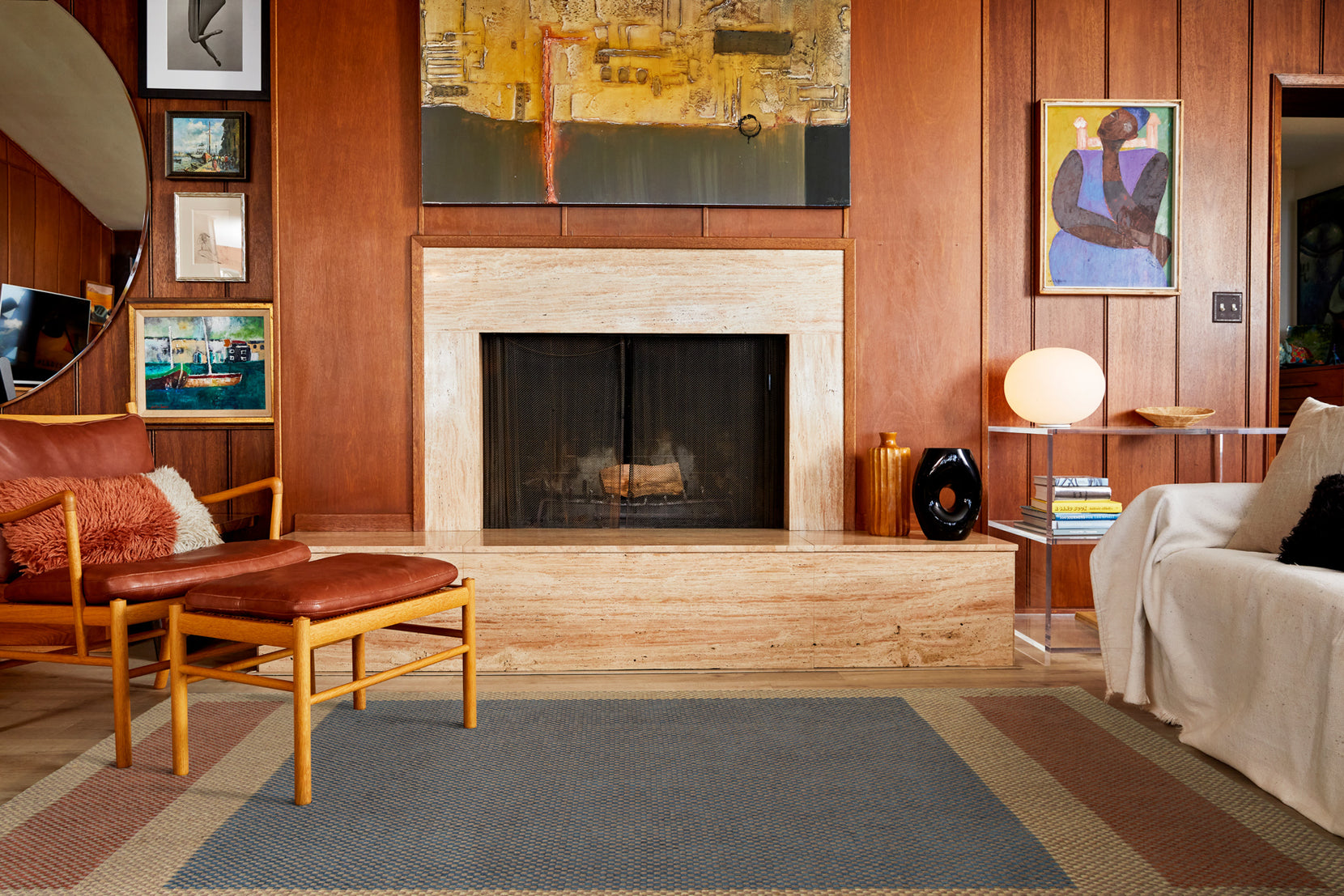 - Color palette: slate gray, taupe, sandstone, terracotta