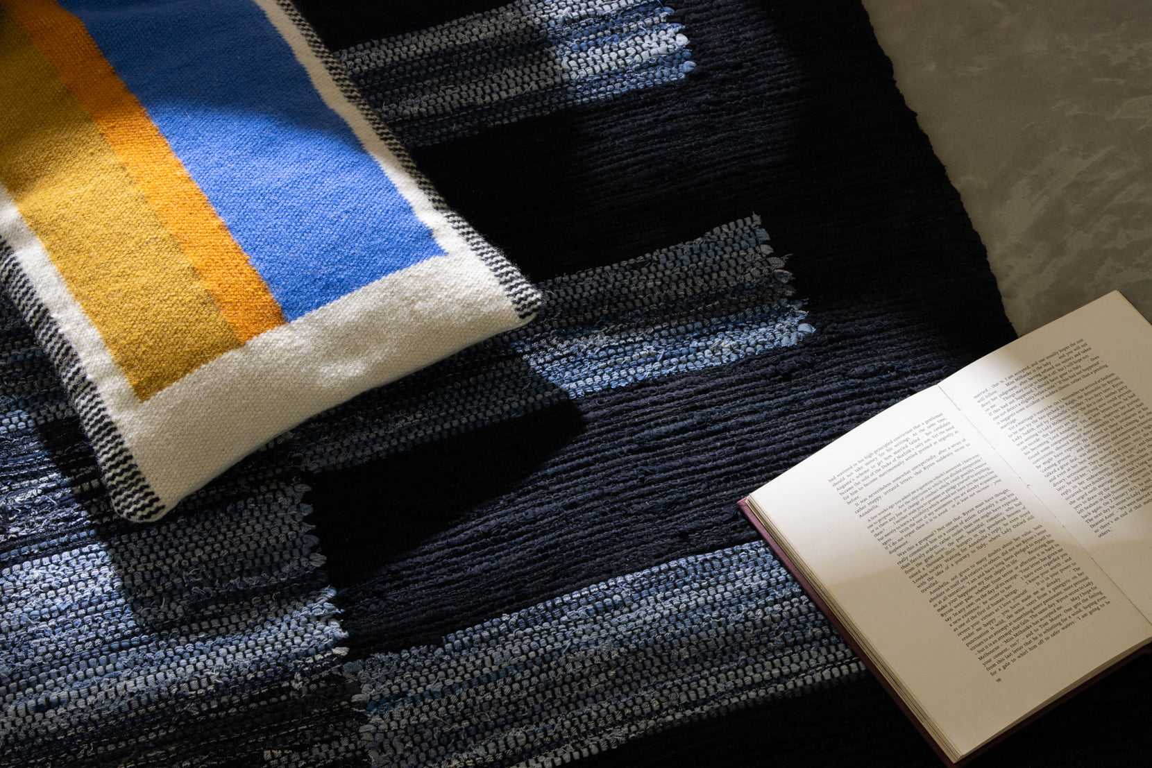 Handwoven flatweaves of recycled denim, the Denim Collection drapes beautifully-like your best-fitting pair of jeans. And just like your favorite jeans, they're washable. Woven in a melange of blues, their simple geometric shapes have a faint 1920s influence; a little bit of art deco meets Georgia O'Keefe's Abiquiu casita. There's a reason denim is a wardrobe staple: it's affordable, durable, good-looking, and versatile, and these rugs are no exception. Plus, textile remnants which would have ordinarily languished in a landfill are given a new life.