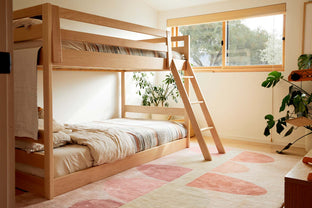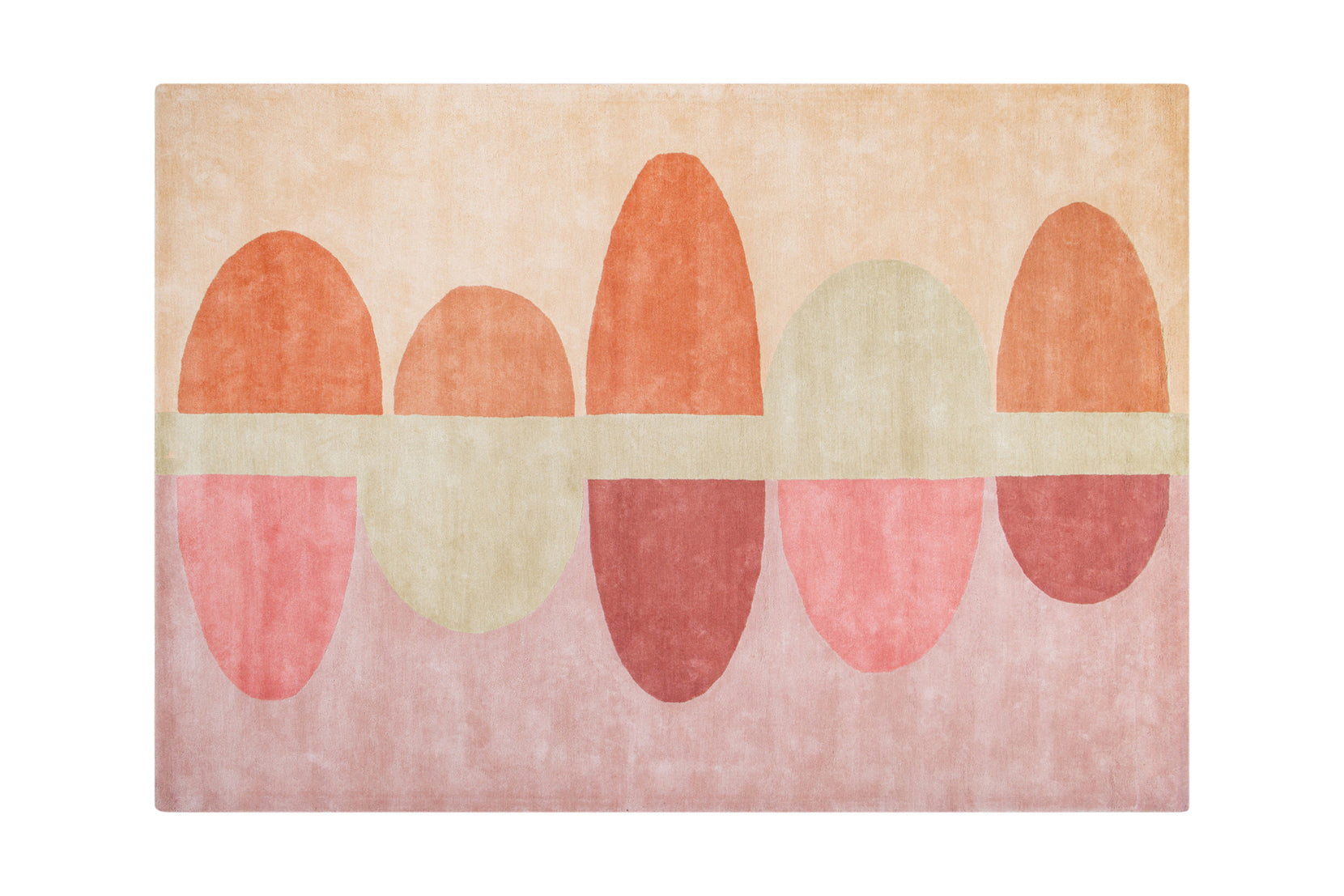 The absurdly soft Bon Bon rugs are hand-tufted, which allowed us to more easily make the kinds of shapes we wanted, and our design team had never seen tufted cotton that felt this lovely. Color palettes are drawn from vintage Southern California scenes-candy pinks and blues harken back to the fifties stucco, a combination of muted-fluorescent orange with sandy tan feels both bright and sun-faded. The prompt was, let's create fun, playful rugs for kids that grown-ups might steal for themselves. Everyone wants a nice treat.