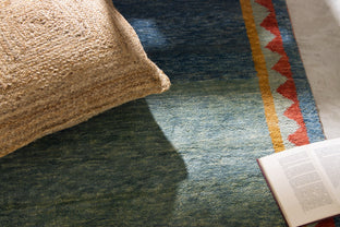 Gabbeh-style rugs are identified by their saturated colors and playful imagery. Often with thick frame borders, like a painting, these thick, soft rugs depict a rich and sophisticated sense of color, telling stories with idiosyncratic geometric details amidst an abyss of saturated, dappled monochrome.