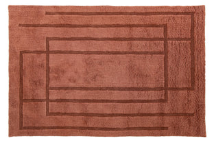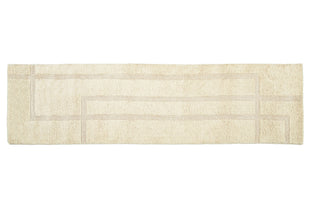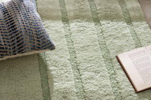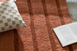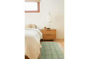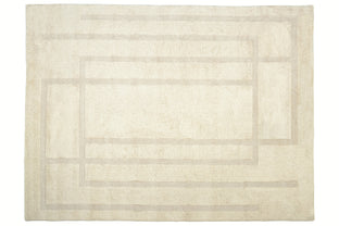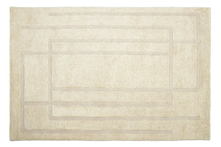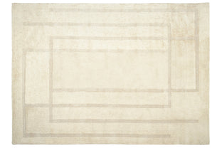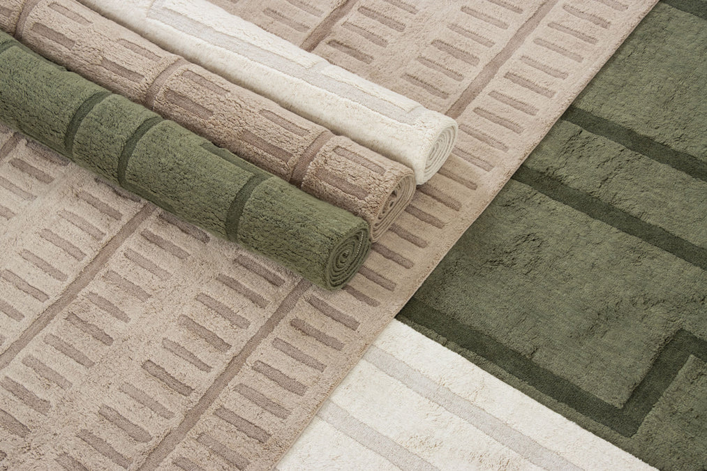 Our first collection of washable wool rugs involved many rounds of revision to ensure these pieces were beautiful and functional. Their modified construction makes the rugs quite supple, so they're more easily squashed into a washing machine; without compromising on thickness, softness, and fluffiness. The graphic simplicity of the linework sings across their soft fields, allowing the high-low effect of the pile to shine through.