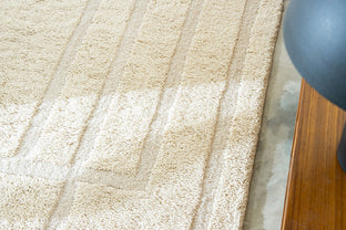 Named for esteemed linocut artists, these rugs feature a thick cut-pile design which reads as tone-on-tone. Sybil's graceful, geometric linework is acrobatic, overlapping, and perfectly balanced.