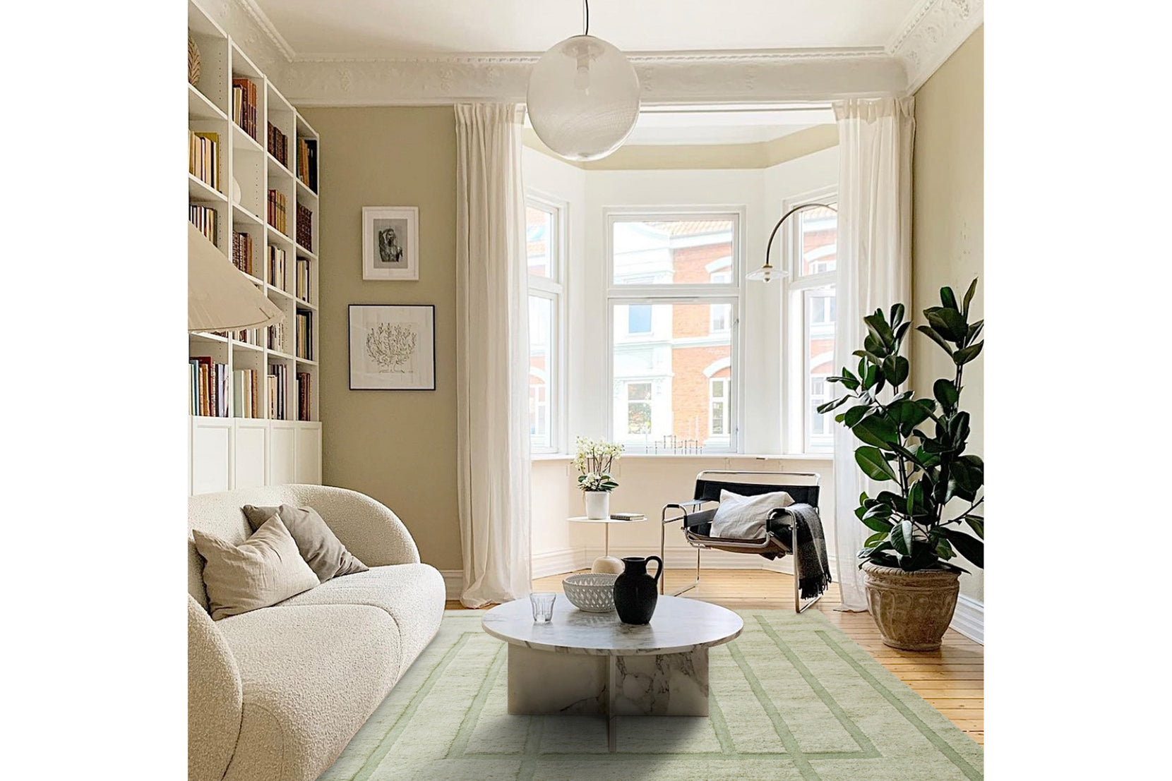 • Color palette: sage green, mint green