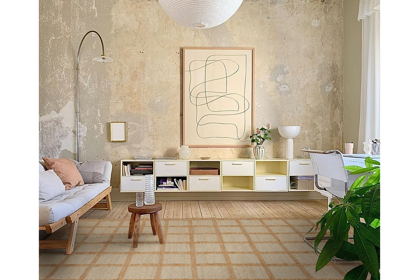 We love the versatility and movement of Zora's contemporary grid pattern.