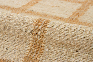 Jute is a natural fiber with a golden sheen, known for its tensile strength and versatility. In this piece, a handspun weft expresses jute's natural irregularities and textures. An eco-conscious crop, jute has minimal water needs, and consumes large enough quantities of carbon dioxide that it's C02-neutral. A cotton warp provides stability and strength.