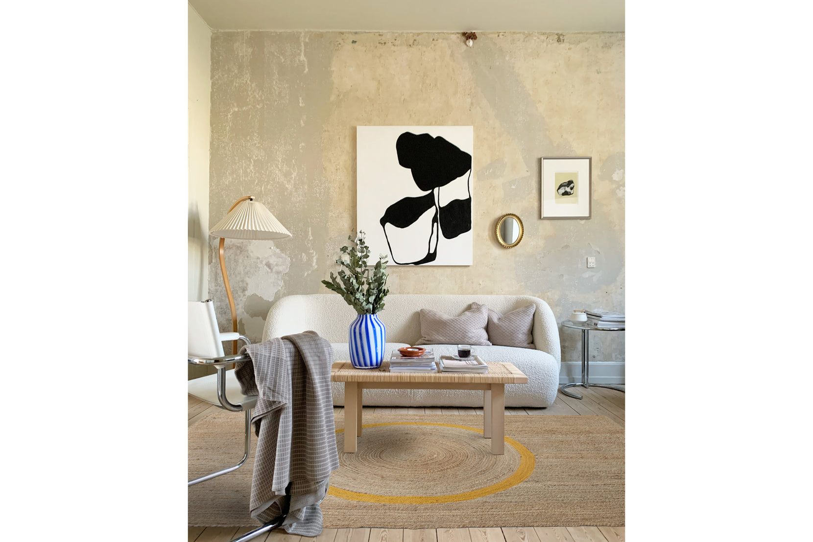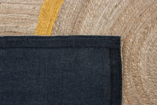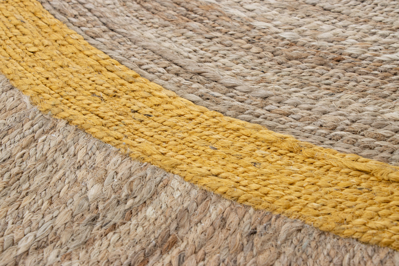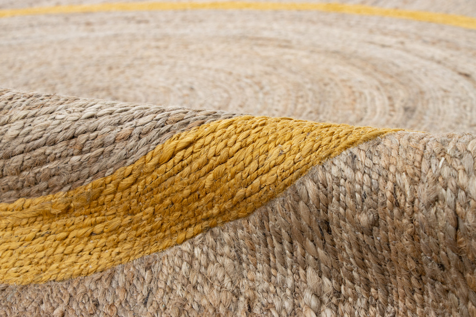 Sun's got a circular design at its core, made of spiraled natural jute and ringed in a lemon yellow border. It's a smart way to add circular movement to your room while still covering more of your floor.