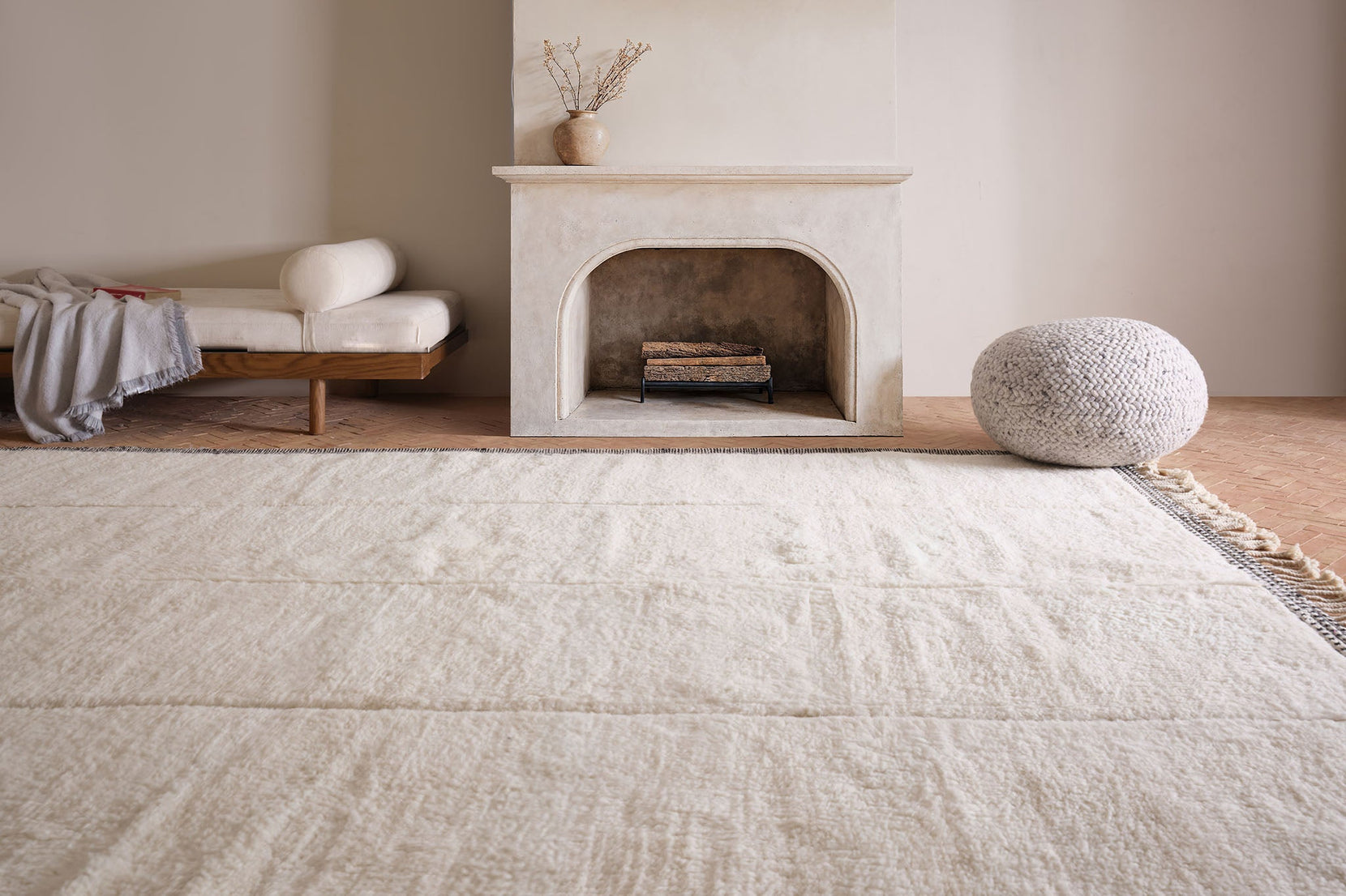 Moroccan wool is locally sourced and produces a thick, strong pile that feels soft and fluffy underfoot. A small amount of shedding is to be expected from this natural fiber, but it’s worth it: its high pile is beloved for its wild, tousled texture. You may find traces of dried hay, grass, or straw in your rug as grazing sheep often collect plant matter in their coats. Remove gently by hand or with tweezers. Please note that when wool gets damp, it will smell like a wet sheep. This is the scent of lanolin, which acts as a waxy barrier against dirt and moisture.