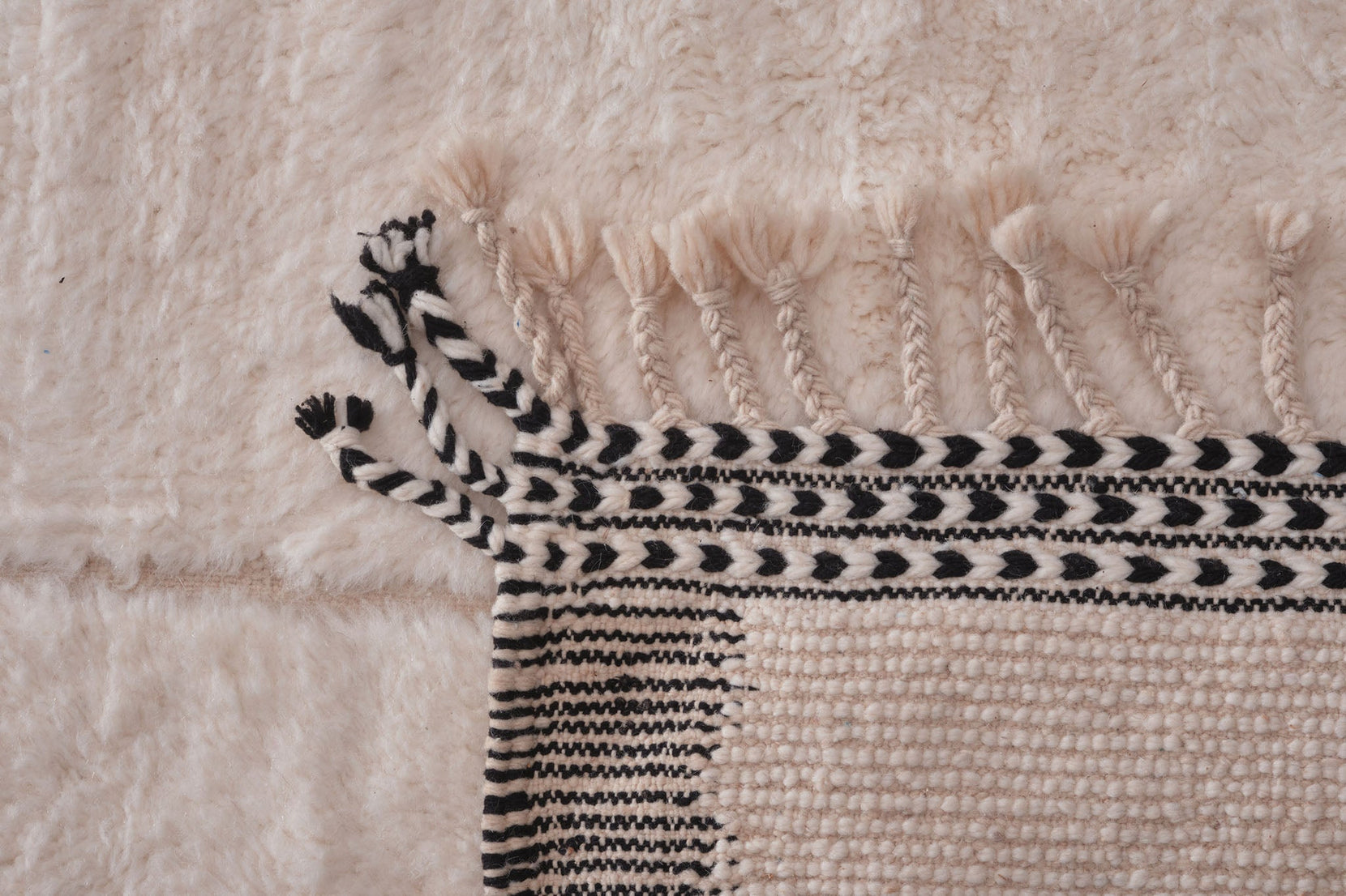 Material DetailsWool, a staple in Moroccan rug design, was considered almost sacred to the Amazigh (Berber) people, whose nomadic lifestyle included sheep and goat herding. In addition to being available, wool is durable, long-lasting, and soft—so it’s super comfy to walk and relax on. In this piece, the wool pile is knotted onto a wool foundation, adding body and helping it hug the floor.