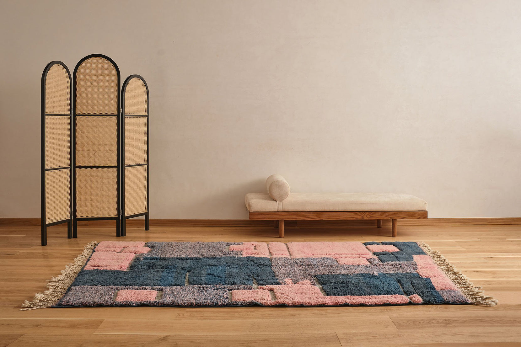 Moroccan wool is locally sourced and produces a thick, strong pile that feels soft and fluffy underfoot. A small amount of shedding is to be expected from this natural fiber, but it’s worth it: its high pile is beloved for its wild, tousled texture.