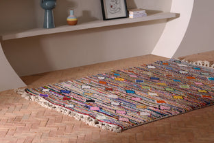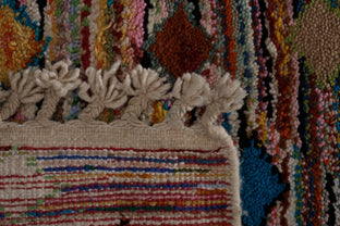 Material DetailsWool, a staple in Moroccan rug design, was considered almost sacred to the Amazigh (Berber) people, whose nomadic lifestyle included sheep and goat herding. In addition to being available, wool is durable, long-lasting, and soft—so it’s super comfy to walk and relax on. In this piece, the wool pile is knotted onto a wool foundation, adding body and helping it hug the floor.