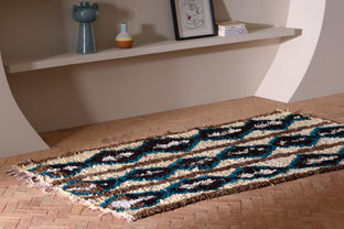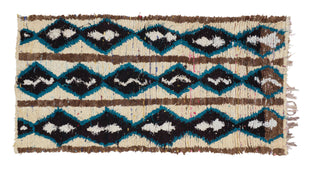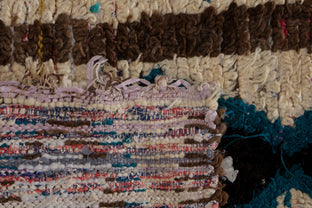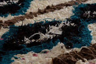Azilal rugs typically have abstract, painterly designs, and are similar to rugs from Ourika. These pieces can be distinguished by their bright colors, facilitated by the use of cotton in addition to wool.
