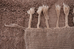 • Every 3-5 years, we recommend getting your rug professionally hand-washed with a Moroccan rug expert. Please do not take it to get steam or dry cleaned—this will almost certainly damage the rug! Hand-washing requires the use of a pH-balanced shampoo, worked into the rug by hand with a soft-bristled brush, before being rinsed thoroughly. This process should be repeated a few times.