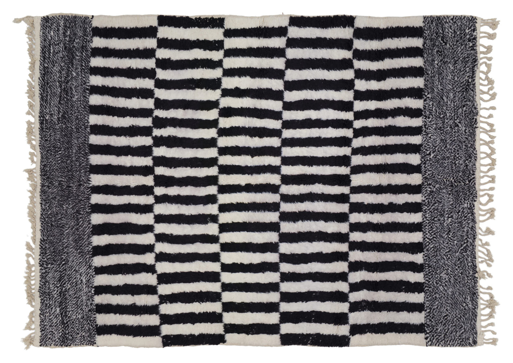 Material DetailsWool, a staple in Moroccan rug design, was considered almost sacred to the Amazigh (Berber) people, whose nomadic lifestyle included sheep and goat herding. In addition to being available, wool is durable, long-lasting, and soft—so it’s super comfy to walk and relax on. In this piece, the wool pile is knotted onto a wool foundation, adding body and helping it hug the floor.