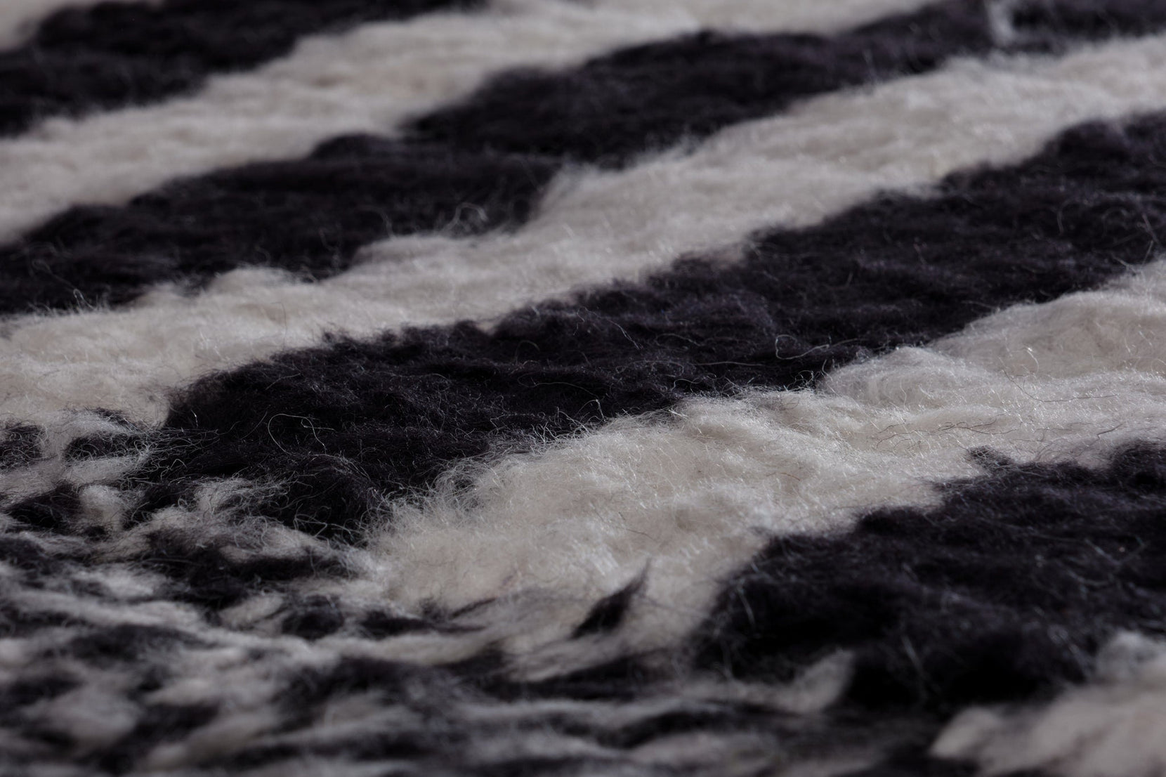 Moroccan wool is locally sourced and produces a thick, strong pile that feels soft and fluffy underfoot. A small amount of shedding is to be expected from this natural fiber, but it’s worth it: its high pile is beloved for its wild, tousled texture. You may find traces of dried hay, grass, or straw in your rug as grazing sheep often collect plant matter in their coats. Remove gently by hand or with tweezers. Please note that when wool gets damp, it will smell like a wet sheep. This is the scent of lanolin, which acts as a waxy barrier against dirt and moisture.