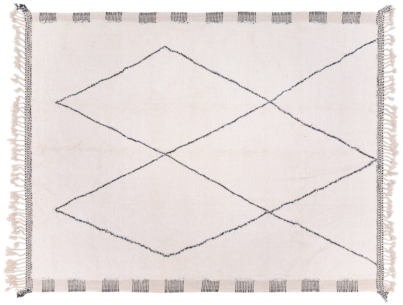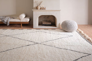Material DetailsWool, a staple in Moroccan rug design, was considered almost sacred to the Amazigh (Berber) people, whose nomadic lifestyle included sheep and goat herding. In addition to being available, wool is durable, long-lasting, and soft—so it’s super comfy to walk and relax on. In this piece, the wool pile is knotted onto a wool foundation, adding body and helping it hug the floor.