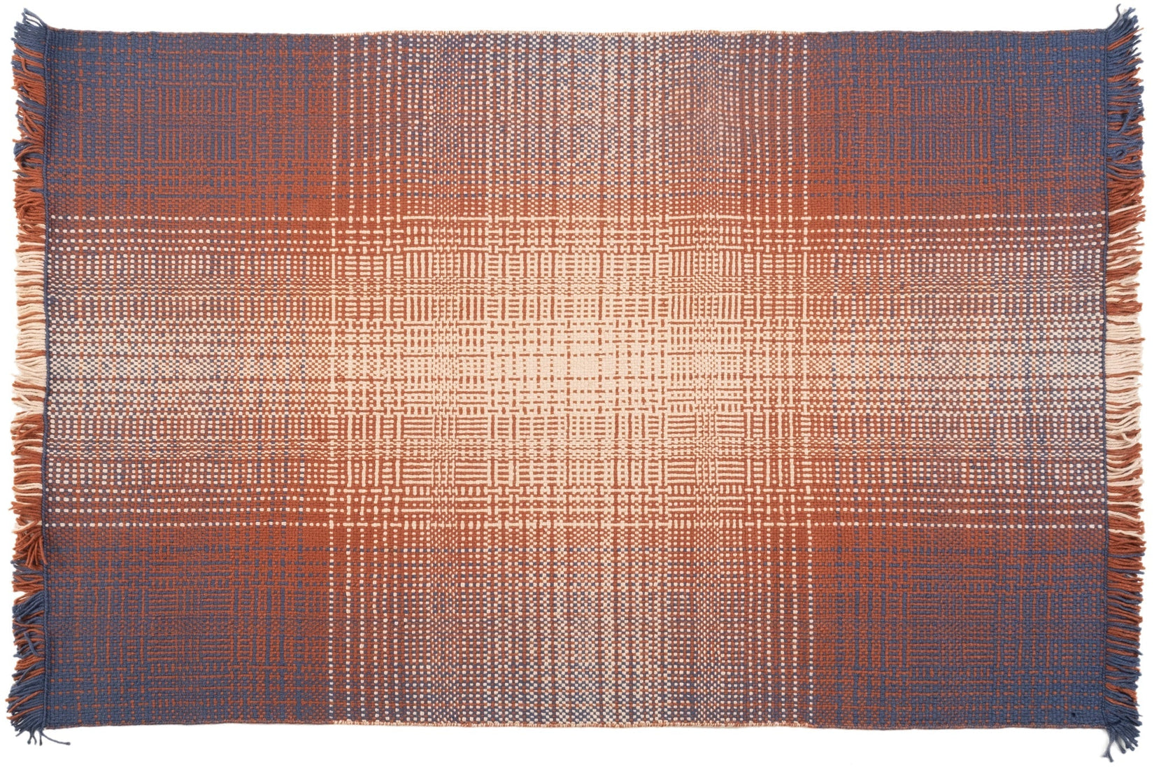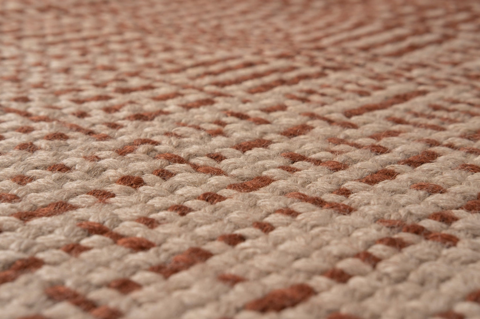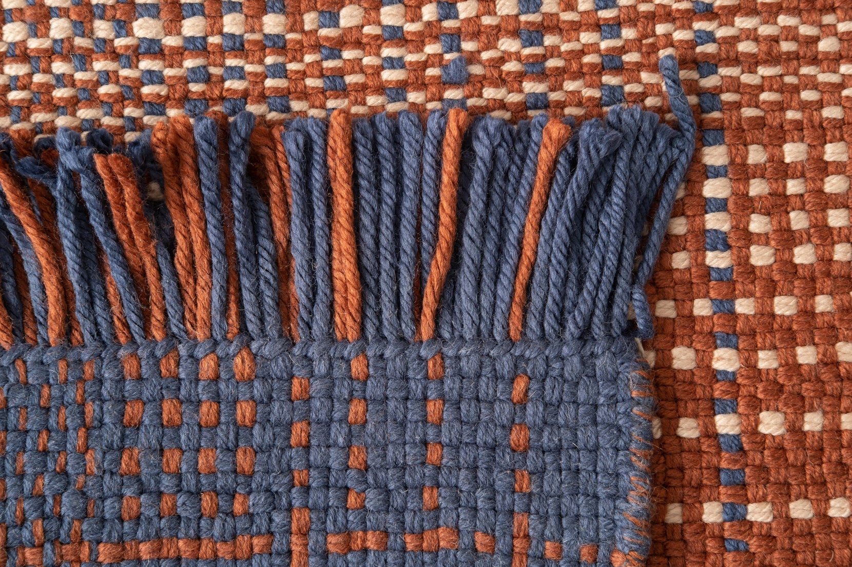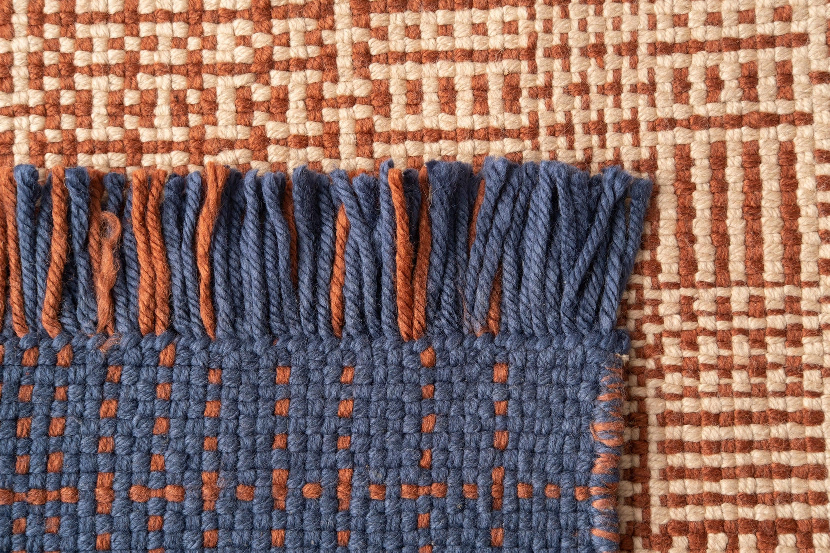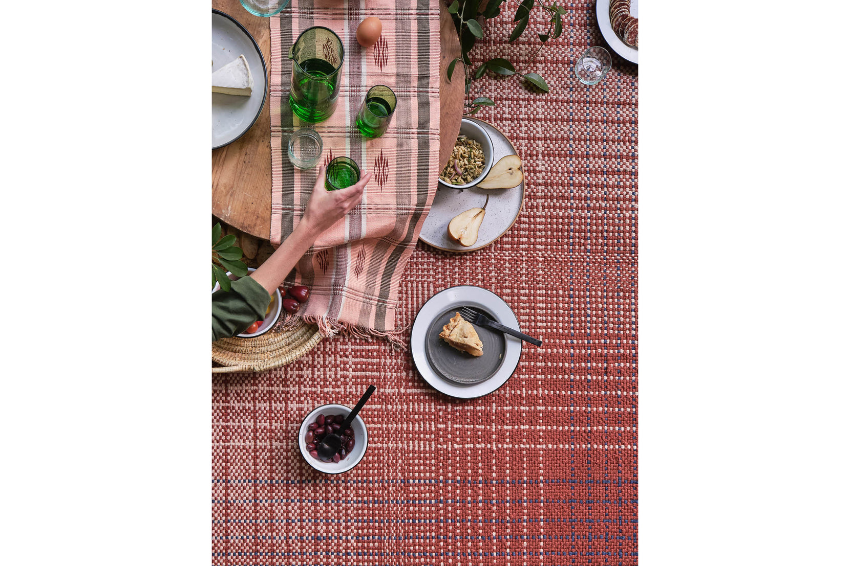 A witty update on classic lawn sport attire, these rugs feature an expanded plaid full-field design. Bocce is a cheery, sophisticated combination of rust and navy with pale blush accents.