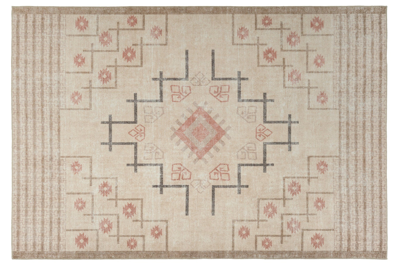 The DesignOur stain-resistant Tende collection draws inspiration from North African funk music and traditional Oushak, or Usak, rug design. Known for their spaciousness and soft color palettes, these popular rugs originated in the western Turkish city of Usak. In these pieces, we've retained that hallmark softness and open composition and added Moroccan-inspired motifs. The Funk rug has a large central medallion, surrounded by fields of geometric flowers.