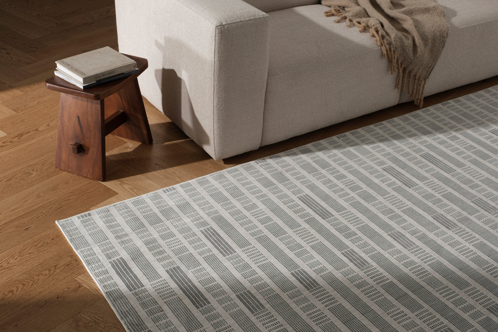 Soft, textural, and easy to clean, these performance rugs are woven from OEKO-TEX® certified polyester and recycled cotton. The stain-resistant polyester we use is soft as wool with a subtle silk-like sheen. It’s easy to clean with water and mild detergent, and its recycled cotton weft adds strength and flexibility to the rug’s structure.