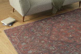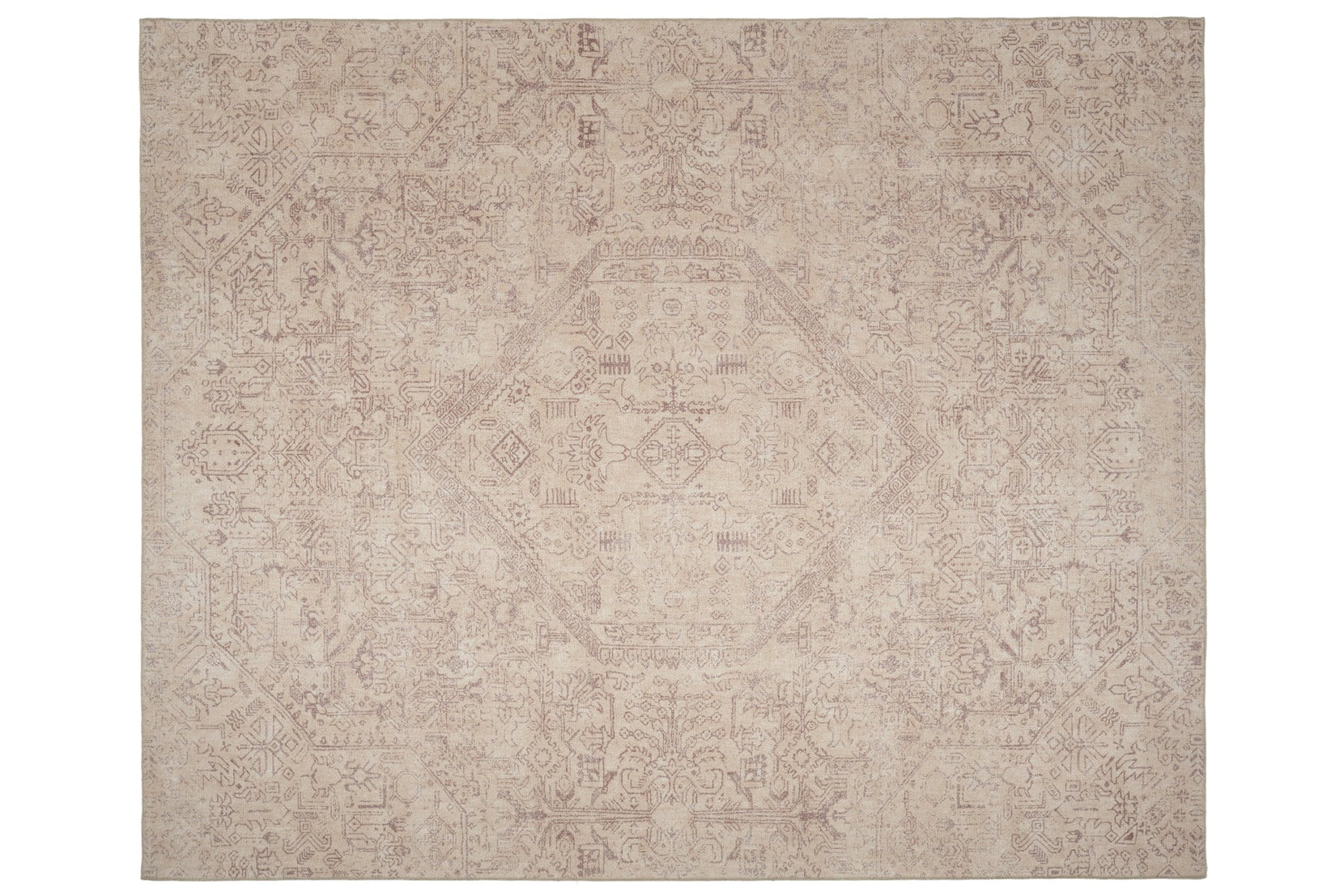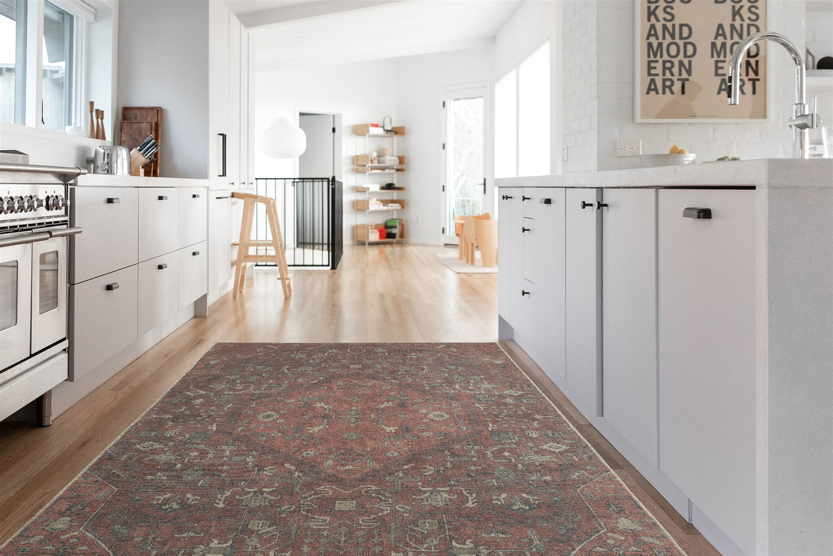 Our stain-resistant Cloudflower collection draws inspiration from traditional floral rugs. In our research, we looked to these classic hand-knotted florals, ikebana arrangements, surrealist landscapes, and the spacious, almost mystical composition of certain Oushak designs. The Zinnia rug resembles an etching of a Bosch painting, full of earthly delight.