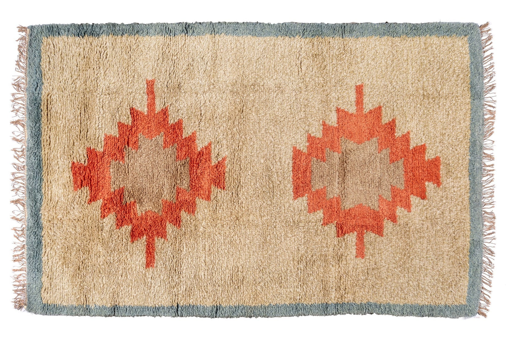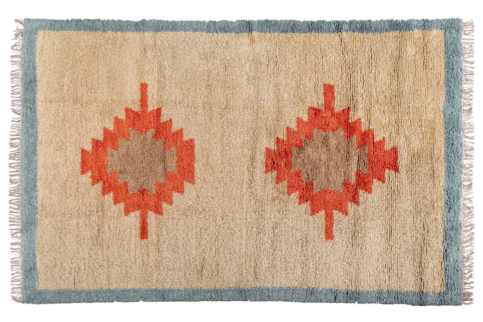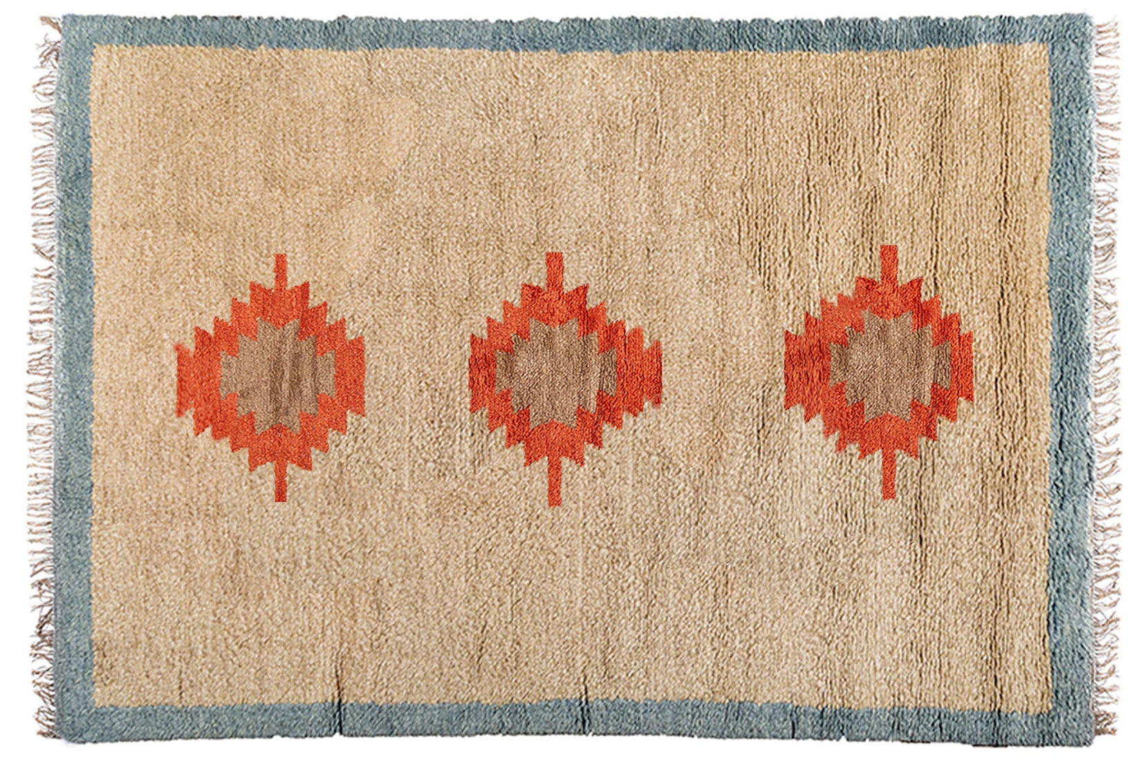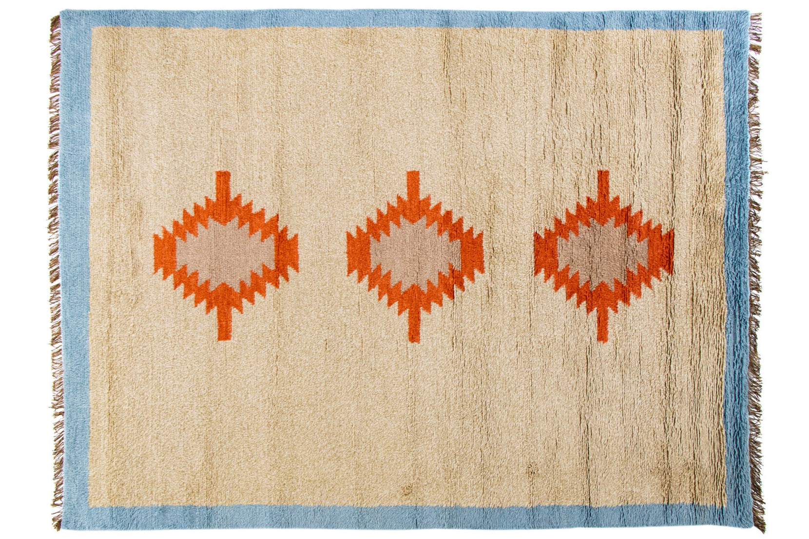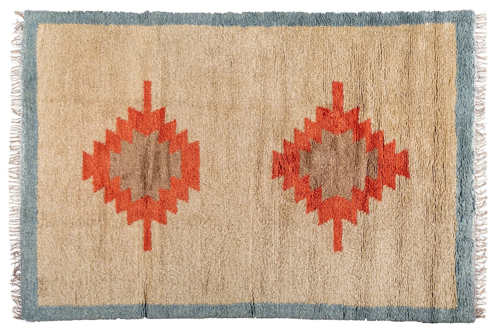• Authentic wool fibers were used to weave this rug. Please note that when wool gets damp, it will smell like a wet sheep. This is the scent of lanolin, which acts as a waxy barrier against dirt and moisture.