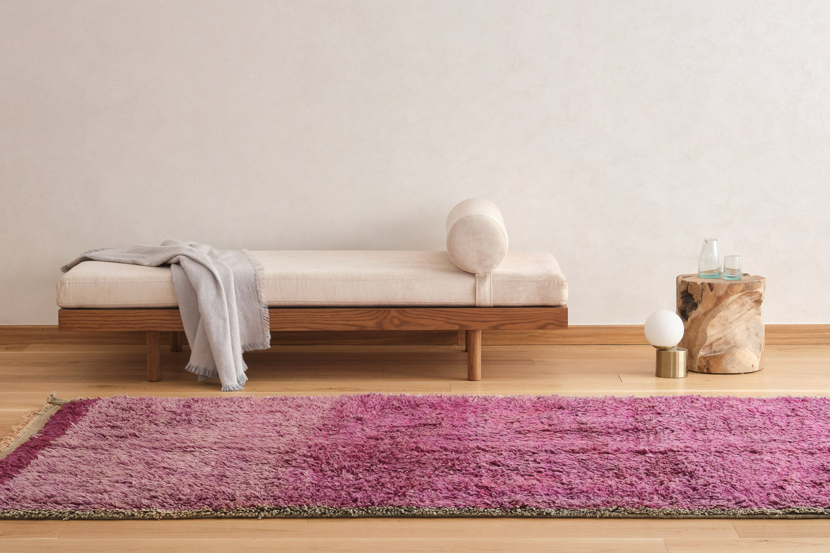 Material DetailsWool, a staple in Moroccan rug design, was considered almost sacred to the Amazigh (Berber) people, whose nomadic lifestyle included sheep and goat herding. In addition to being available, wool is durable, long-lasting, and soft—so it’s super comfy to walk and relax on. In this piece, the wool pile is knotted onto a wool foundation, adding body and helping it hug the floor.