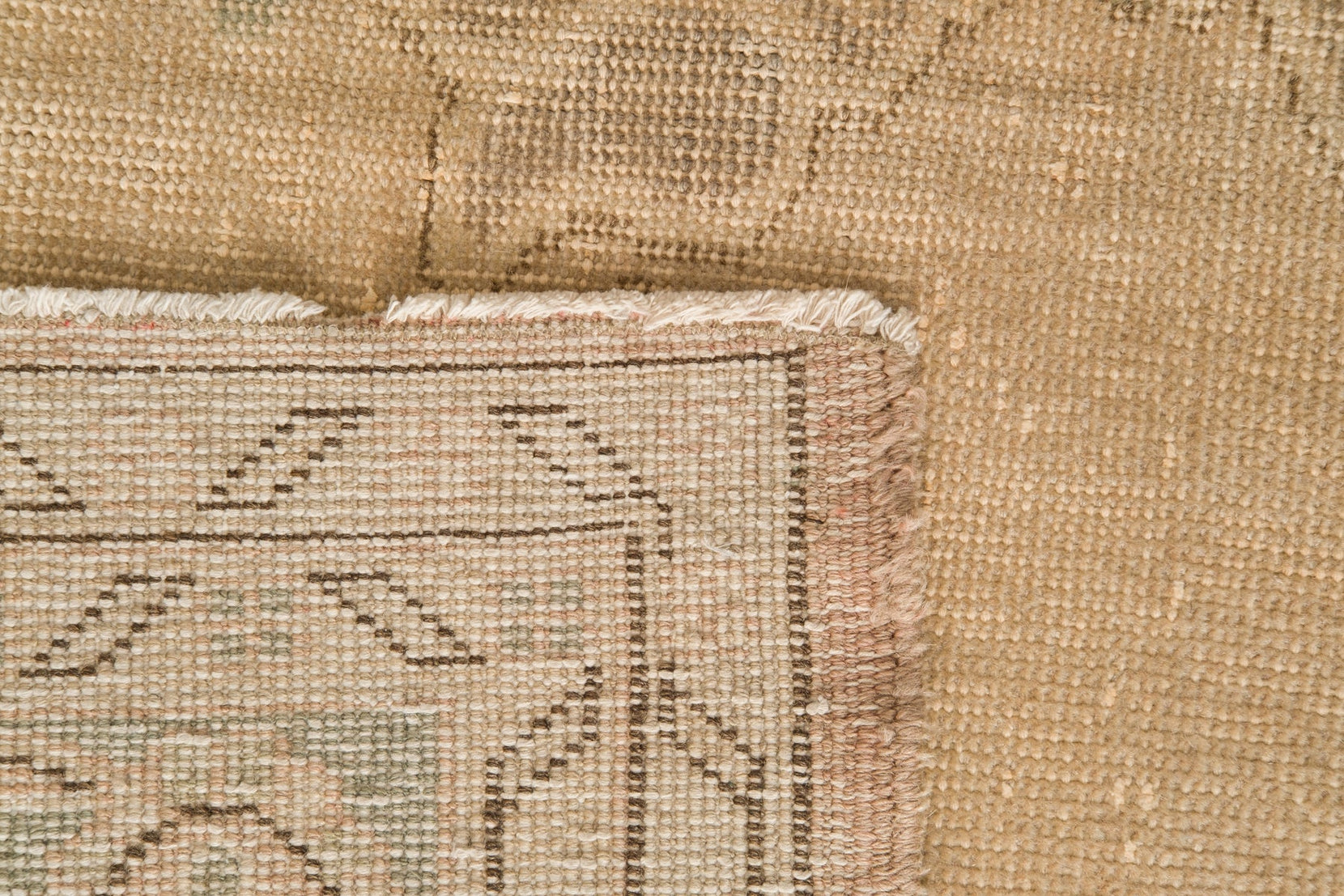- This rug displays slight rippling at the borders due to its handwoven nature.