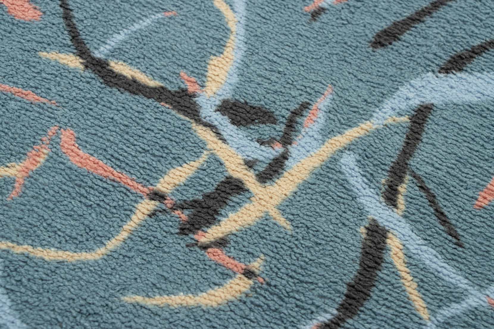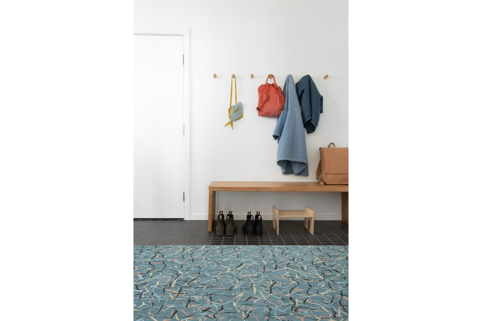 Digi’s composition resembles the spontaneity and emotion of splatter art—with a modern twist. Rather than flinging, dripping, or throwing paint to create texture and movement, each washable rug is printed with advanced jets that inject color with surgical precision. Wiggle’s hand-drawn illustrations move with an ‘80s Memphis quality.