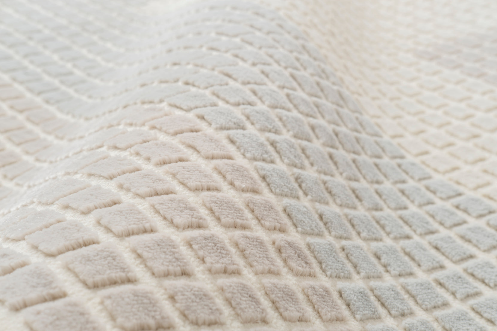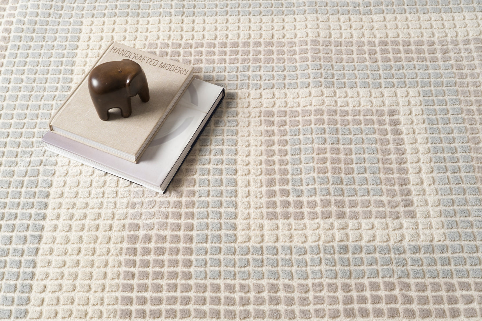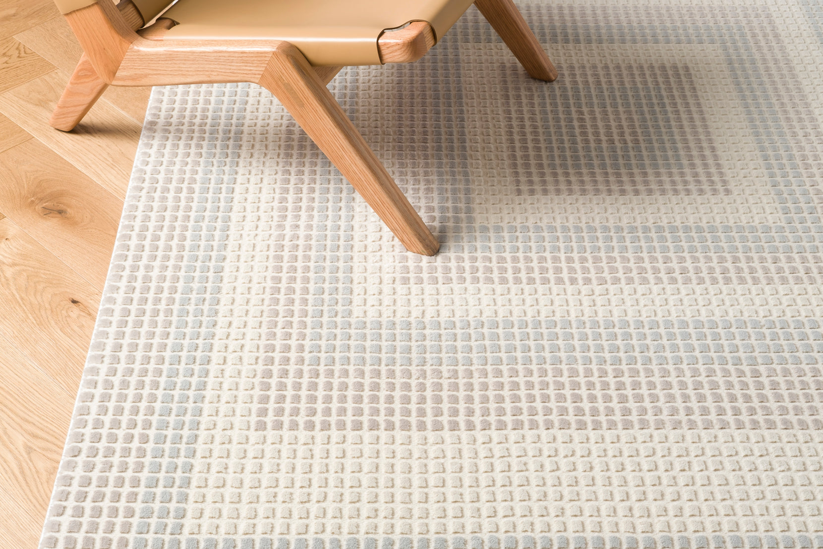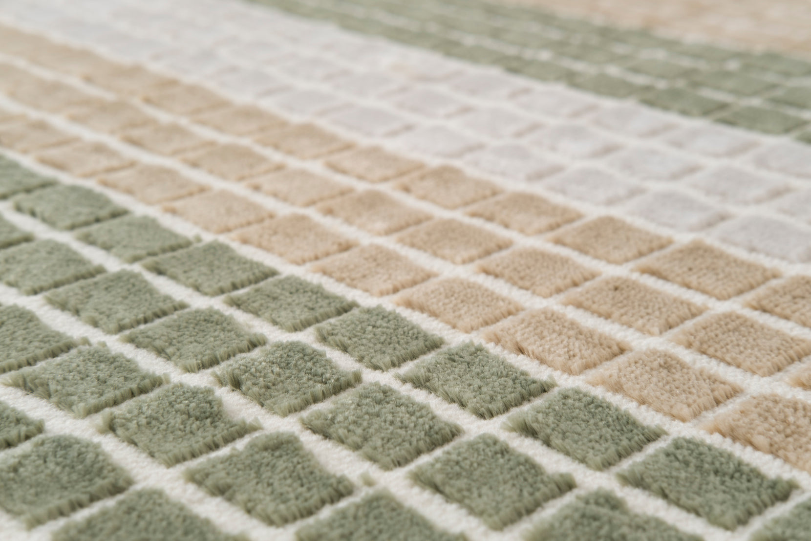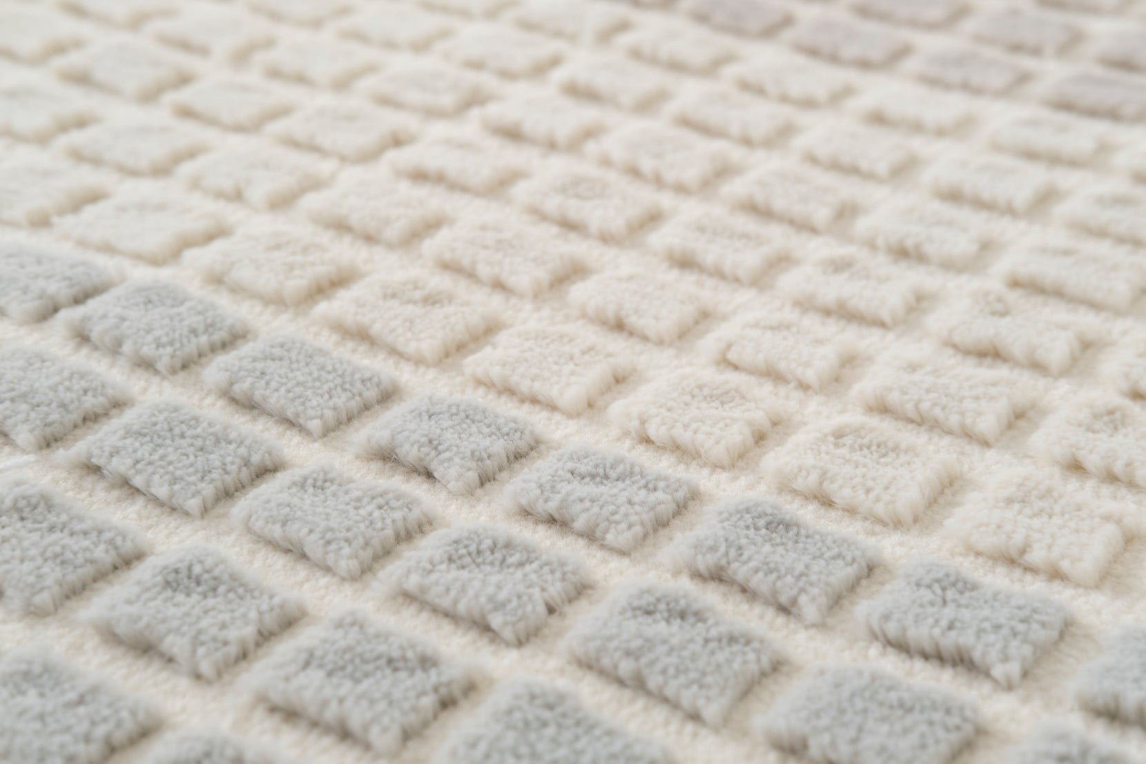 We made a better washable rug. Made of recycled materials and done in calm neutrals, with an extraordinarily comfortable pile, these pieces are not mats: they're the real deal, thick and soft to cushion every step. Plus, their lightness and foldability makes washing easy. Gaziantep, where these rugs are made, is home to many ancient mosaics, whose edges have softened imperfectly over time. The Mosaic Collection is made of raised pile squares with soft edges: when your foot hits the pile it crushes, and its silklike memory means the squares move with wear, so it looks better as you live with it.