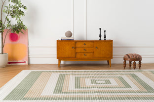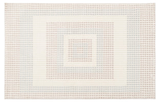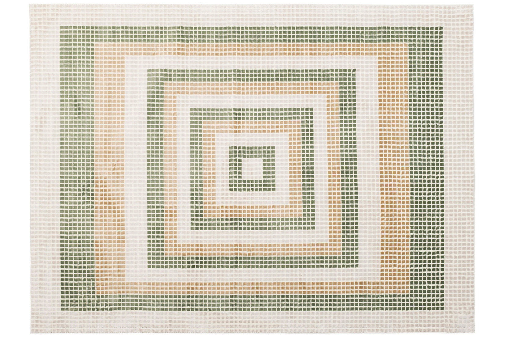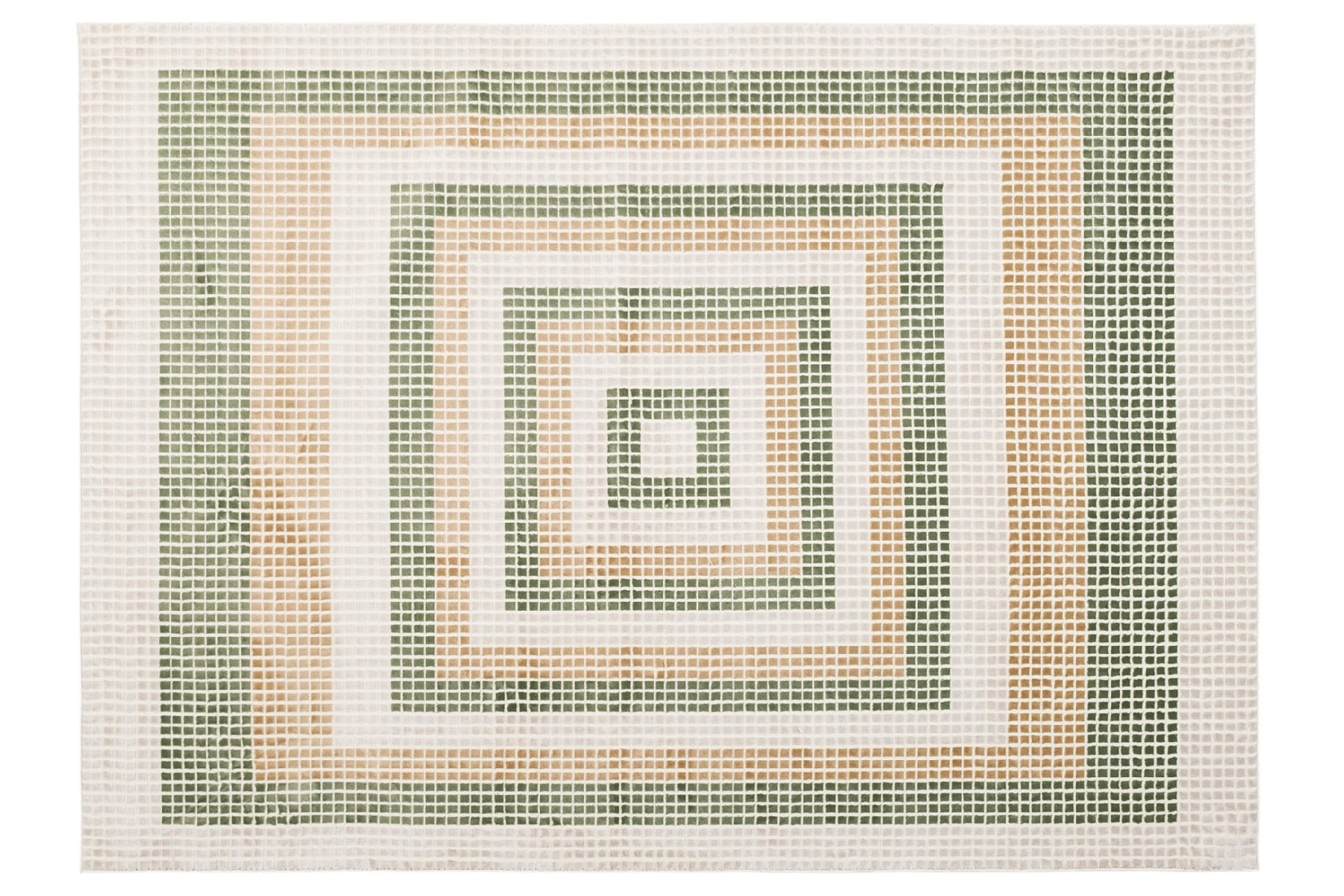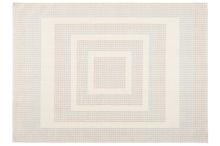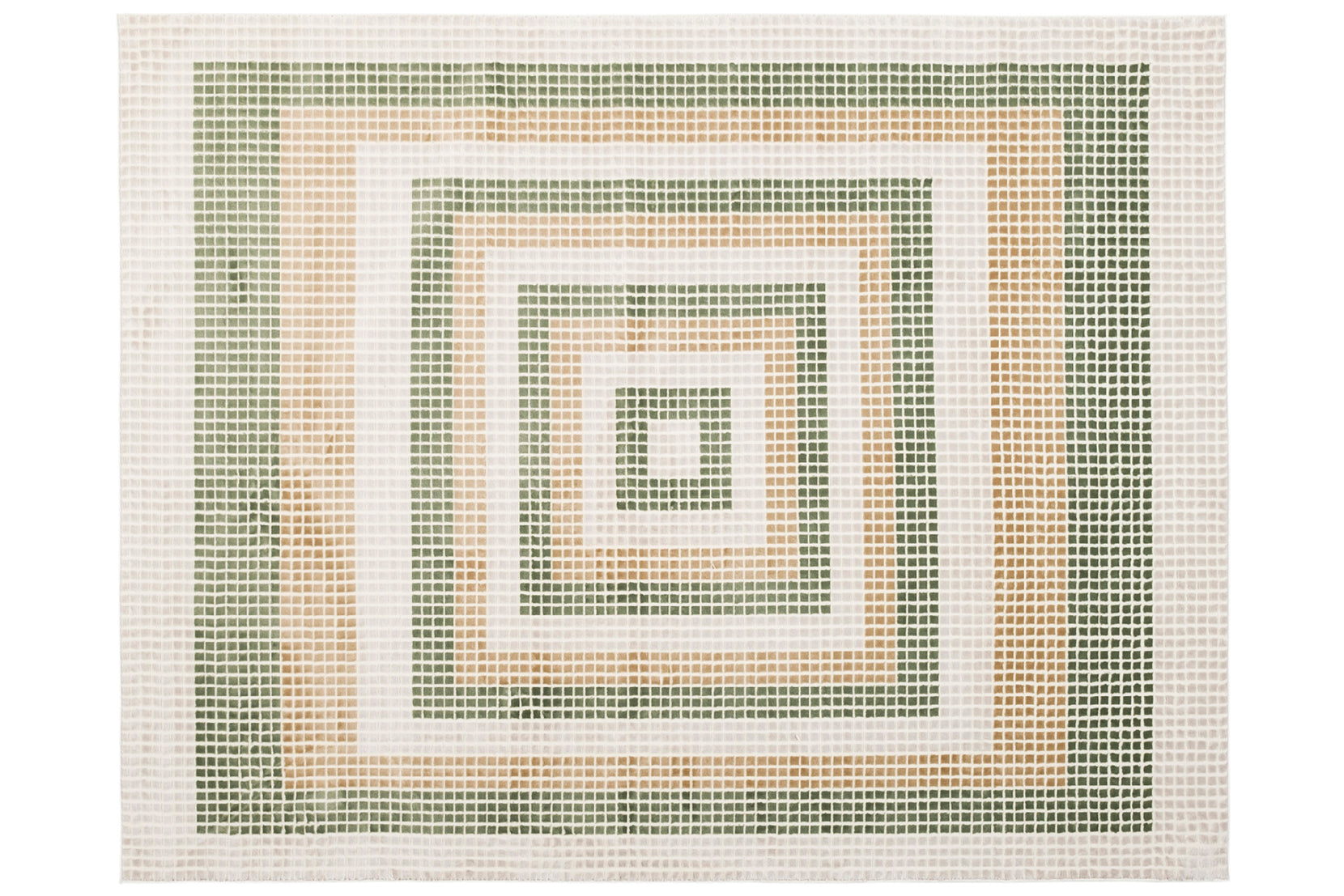 The DesignOur washable Mosaic Collection has a pile design made up of small squares, much like its namesake, and behaves like its namesake as well: the small boxes morph shape once they're walked on, creating a series of softened, imperfect squares. Abra's design of Albers-inspired concentric squares are multicolored. It's named for the site of a temple with some of the earliest known examples of mosaics, made with colored stones, shells, and ivory.