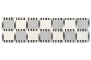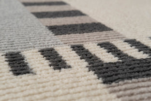 The DesignDamas has a soft gray and cream checkerboard ground, intercepted by shorter stripes of deep charcoal and smokey mauve-taupe. These pieces have a cool cast to them, with grays and taupes veering towards faint blues and purples. Their channeled construction is thick and soft, adding lots of cushion to your footfall. The organic, geometric shapes are a reference in part to Anni and Josef Albers' trips to Mexico, where they studied Mayan temples and pre-Columbian art, searching for inspiration among the greats.