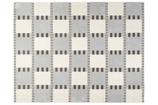 The DesignDamas has a soft gray and cream checkerboard ground, intercepted by shorter stripes of deep charcoal and smokey mauve-taupe. These pieces have a cool cast to them, with grays and taupes veering towards faint blues and purples. Their channeled construction is thick and soft, adding lots of cushion to your footfall. The organic, geometric shapes are a reference in part to Anni and Josef Albers' trips to Mexico, where they studied Mayan temples and pre-Columbian art, searching for inspiration among the greats.