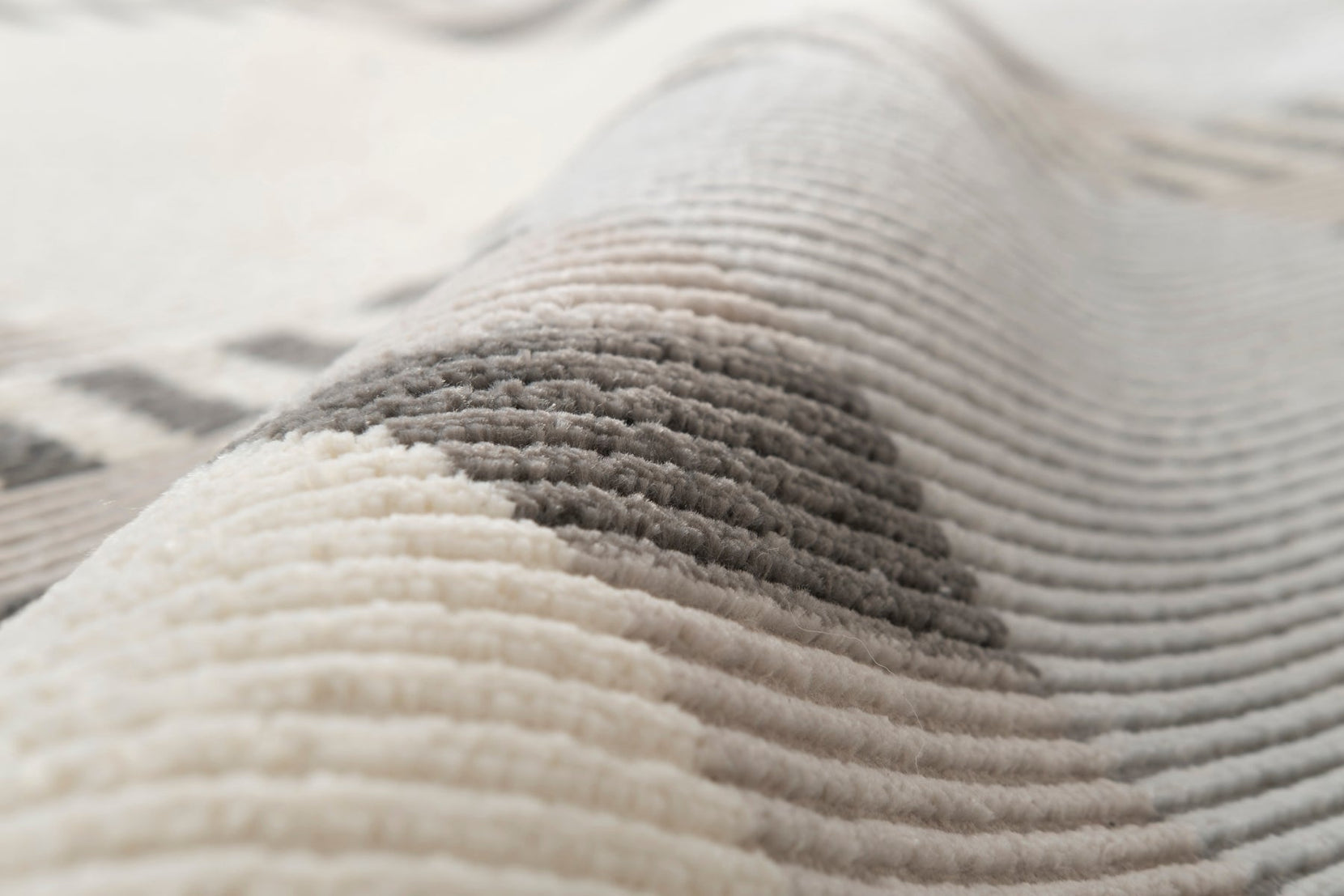 We made a better washable rug. Made of recycled materials with an extraordinarily comfortable pile, these pieces are not mats: they're the real deal, thick and soft to cushion every step. Plus, their lightness and foldability makes washing easy. Done in calm neutrals, their gentle motifs are carved out in relief, reminiscent of woodcut printing.