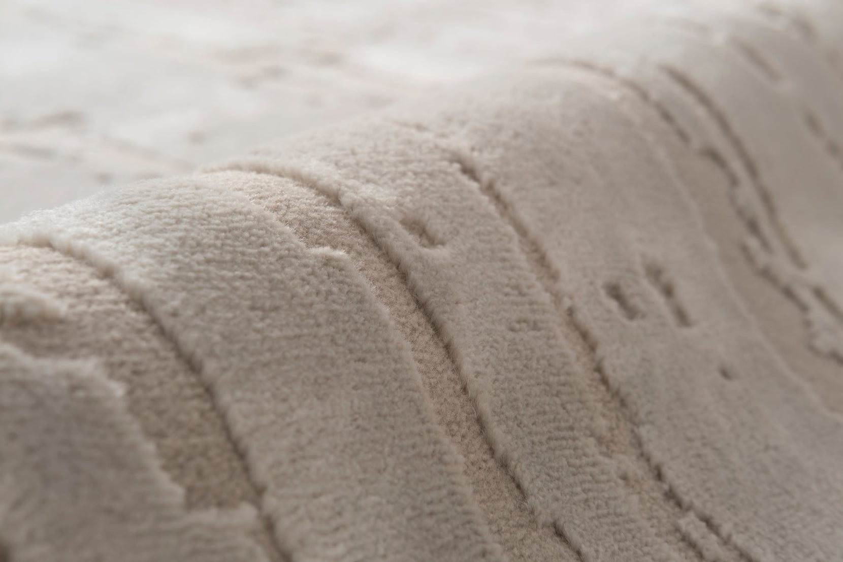 We made a better washable rug. Made of recycled materials with an extraordinarily comfortable pile, these pieces are not mats: they're the real deal, thick and soft to cushion every step. Plus, their lightness and foldability makes washing easy. Done in calm neutrals, their gentle motifs are carved out in relief, reminiscent of woodcut printing.