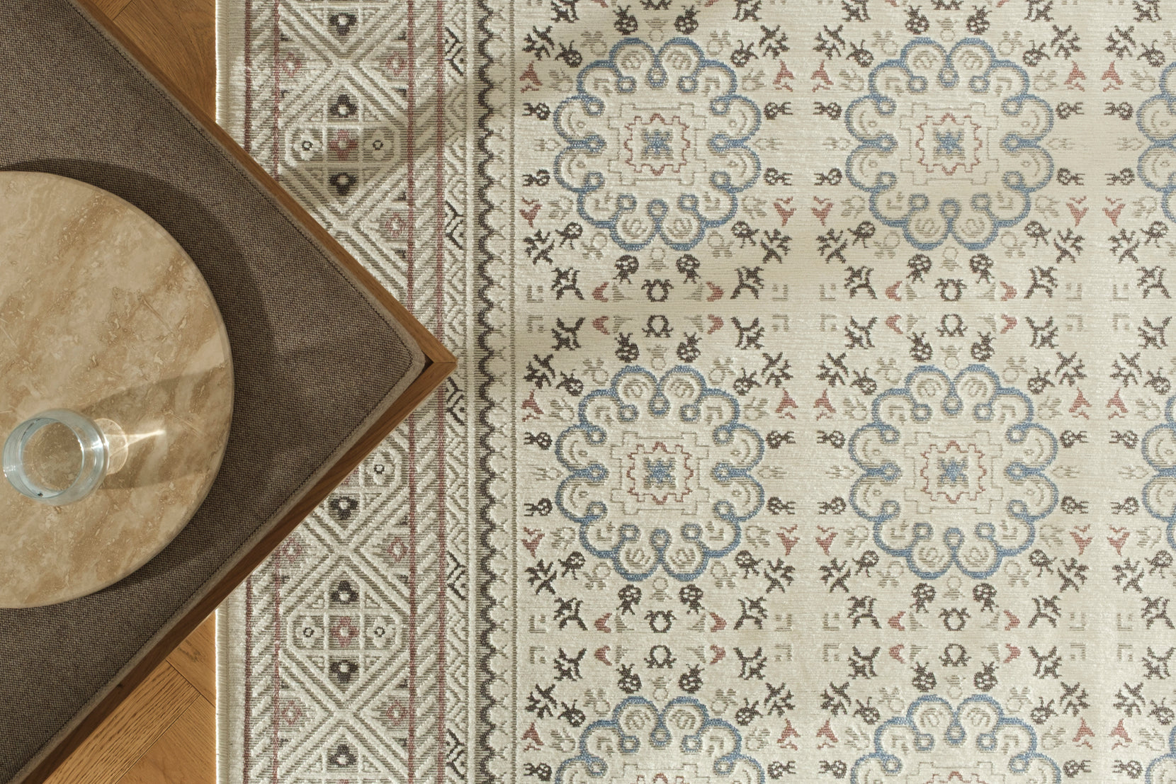 - Color palette: cream, bone beige, cadet blue, baby blue, walnut brown, espresso brown, crimson red