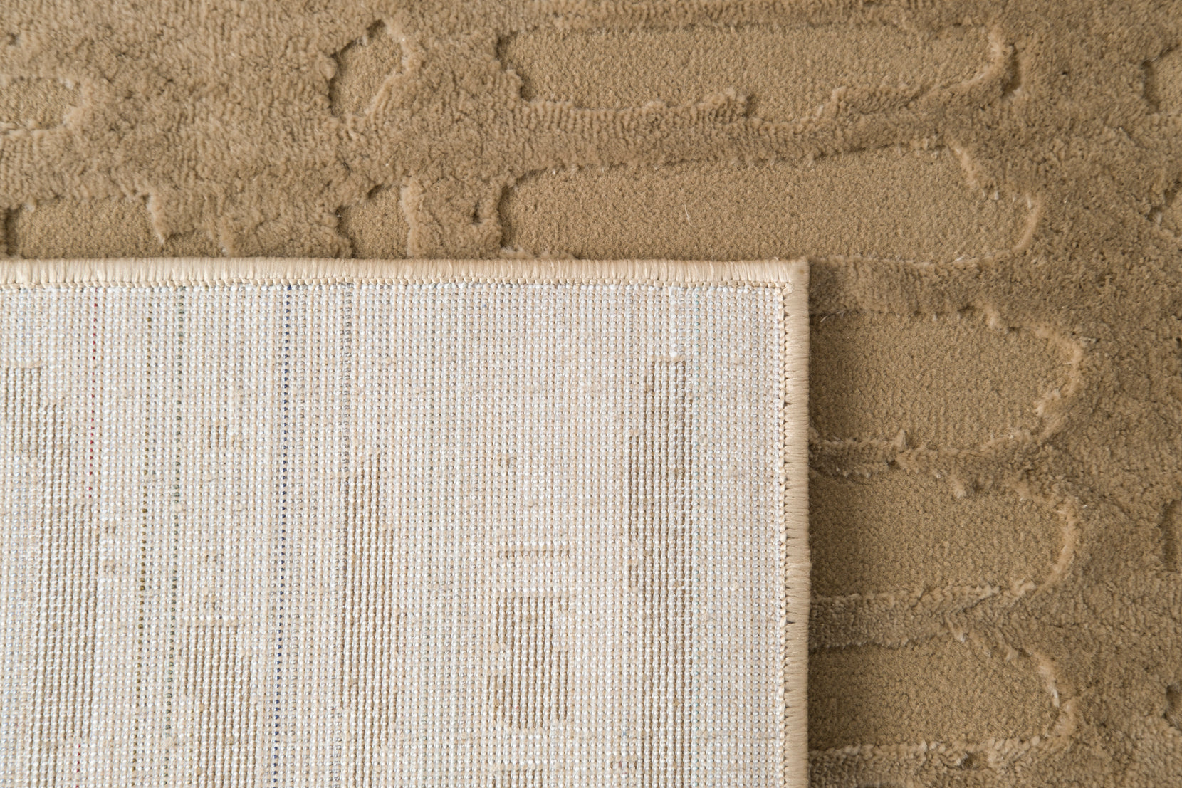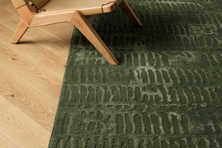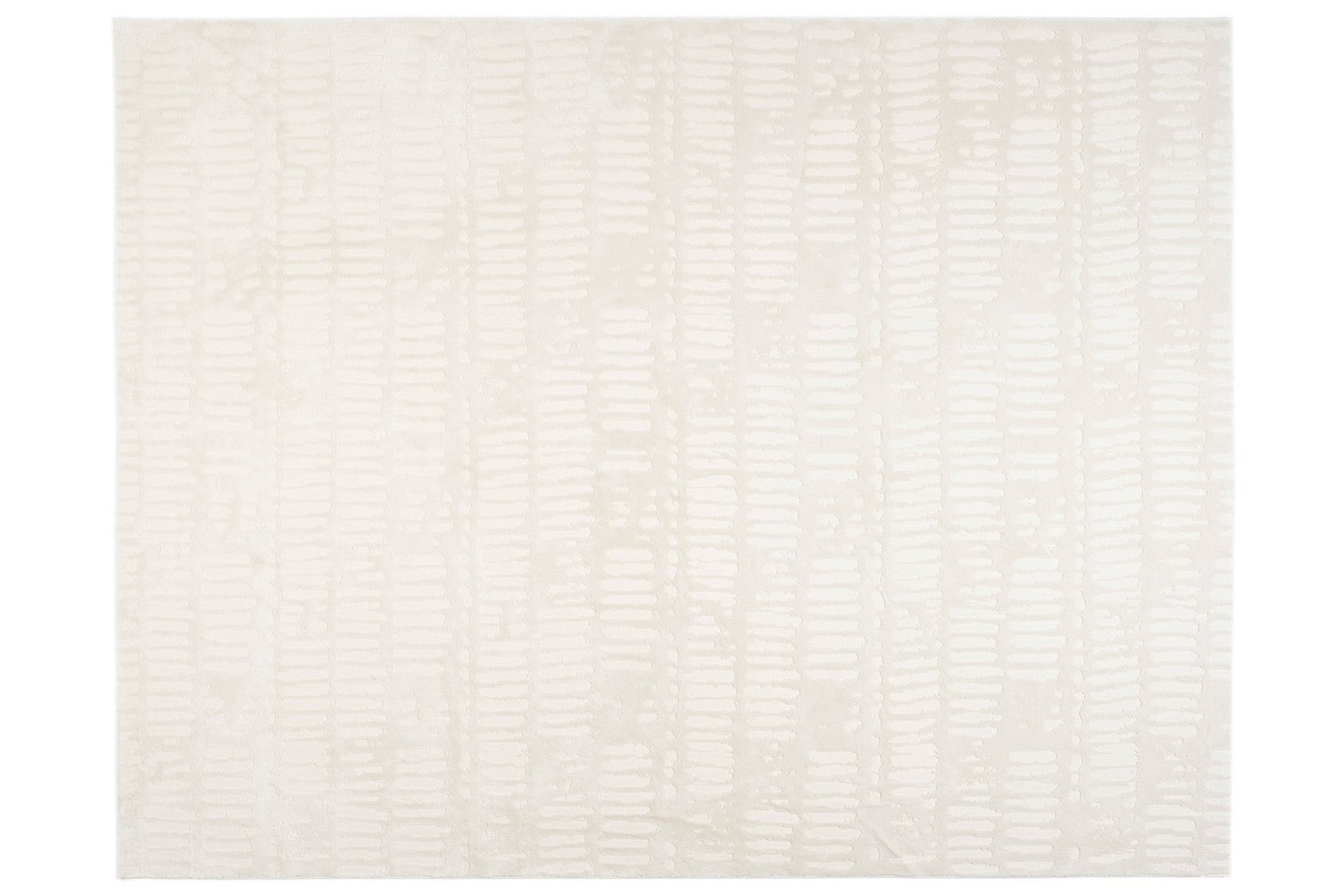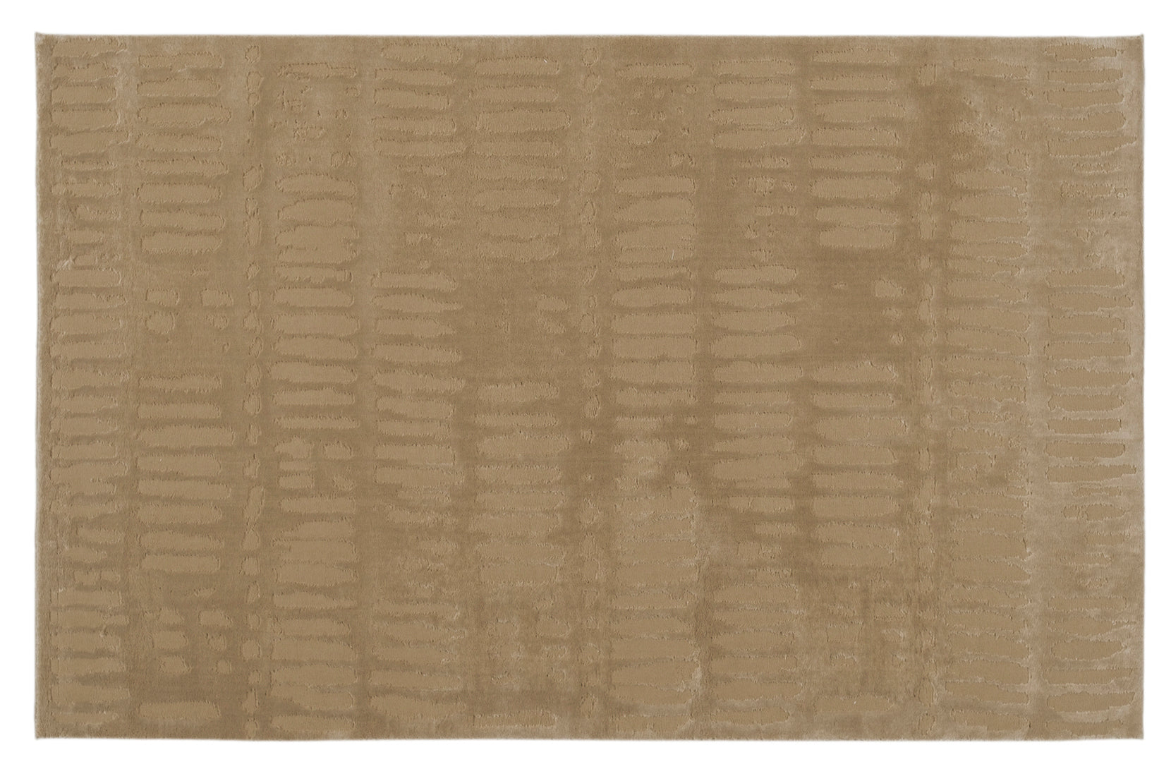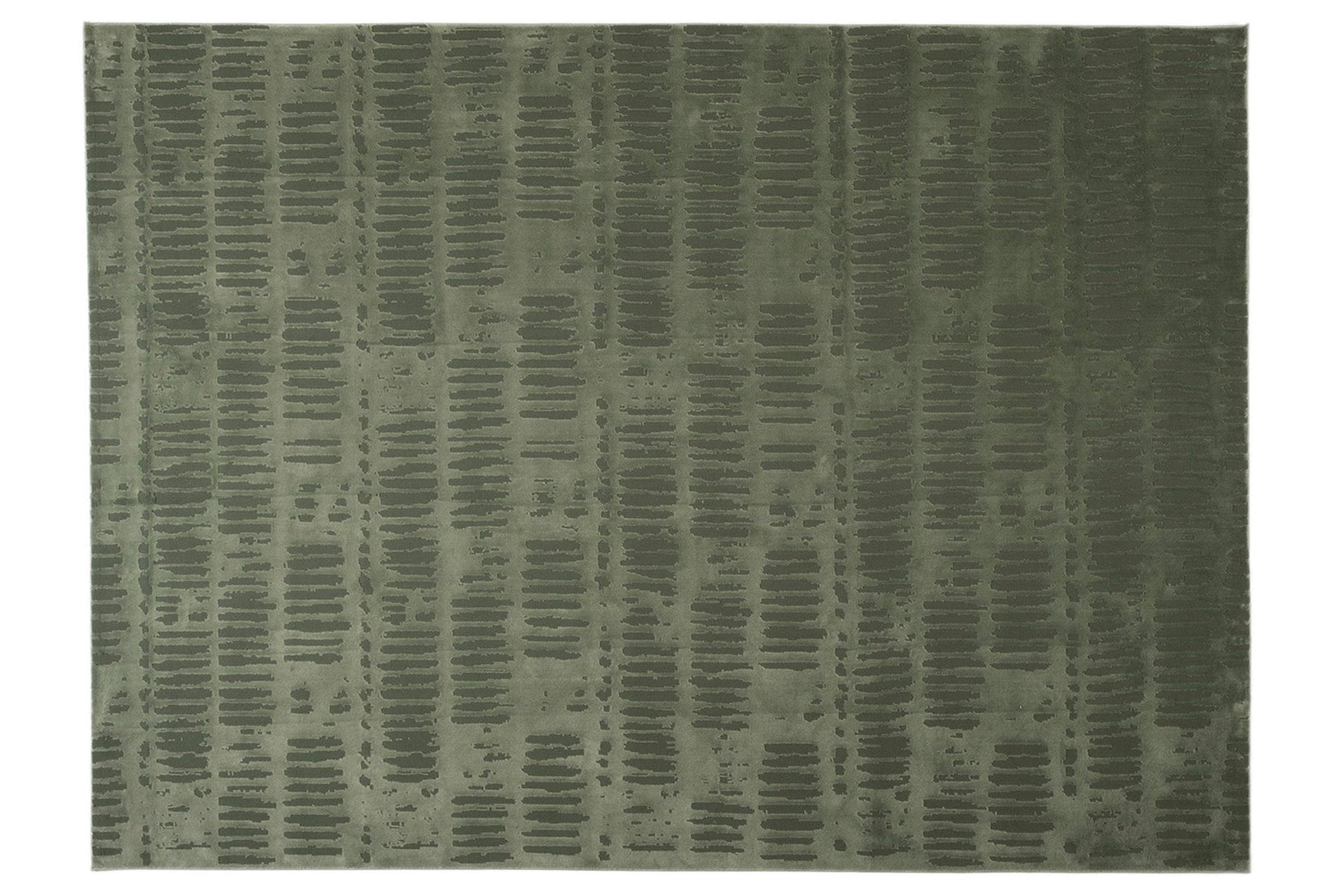 Shell is a solid-color rug with geometric line drawings in relief, like ancient ammonite fossils. Its tone-on-tone effect is inspired by the accidental designs of beach tides: the smoothness of seashells eroded over time, imprints left by waves on sand, the organic textures of corals and rocks.