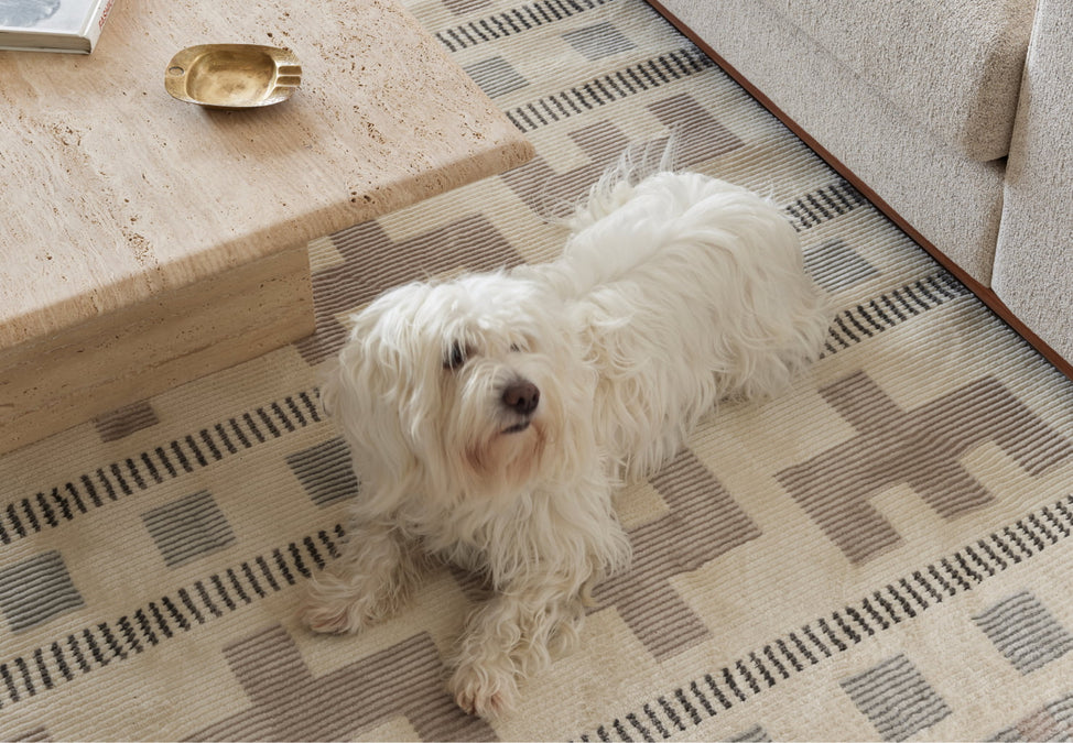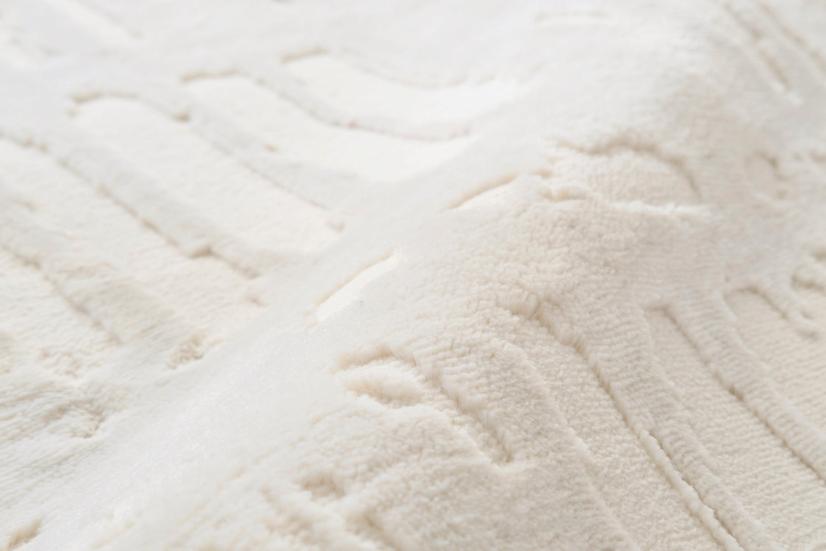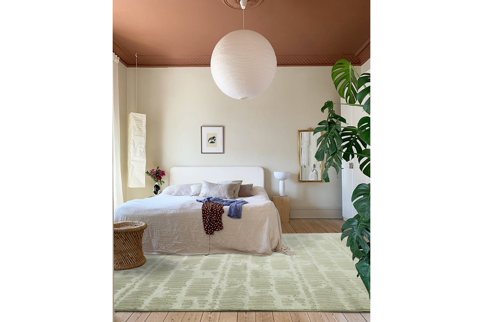 We made a better washable rug. Made of recycled materials with an extraordinarily comfortable pile, these pieces are not mats: they're the real deal, thick and soft to cushion every step. Plus, their lightness and foldability makes washing easy. Done in calm neutrals, their gentle motifs are carved out in relief, reminiscent of woodcut printing.