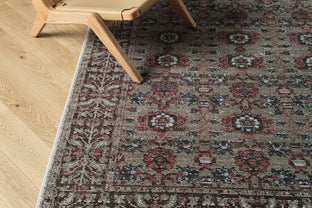 Our washable Garde collection puts a spin on traditional Anatolian rug design. Contrasting black linework, done in a slightly-shrunken pile, creates movement within classic Turkish motifs. This disruption blurs the rug's composition, as though the yarn has been dragged across the rug, making it feel static and crackly, traditional but not. The Soulage rug features a central field of flowers surrounded by a mirrored triple border.
