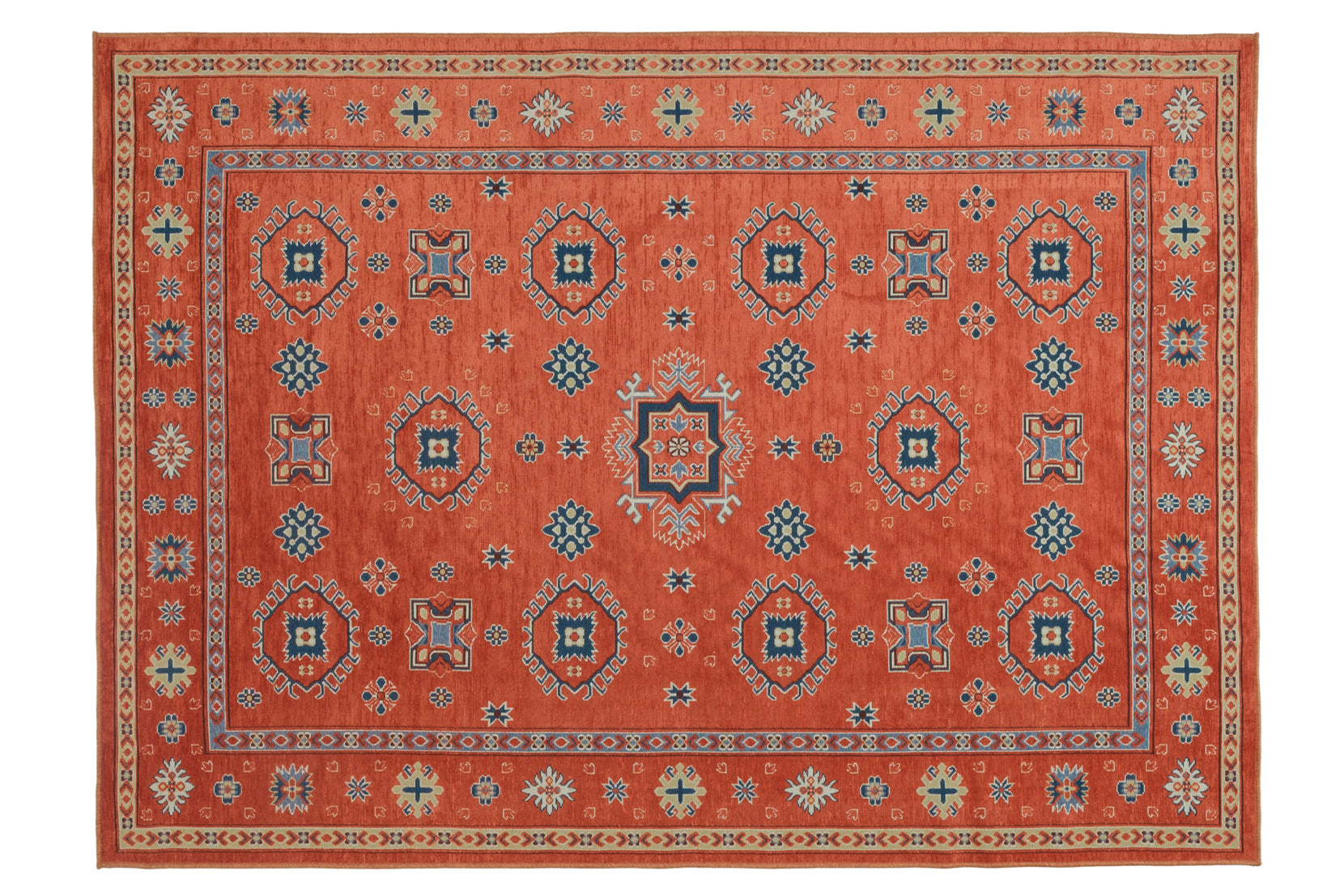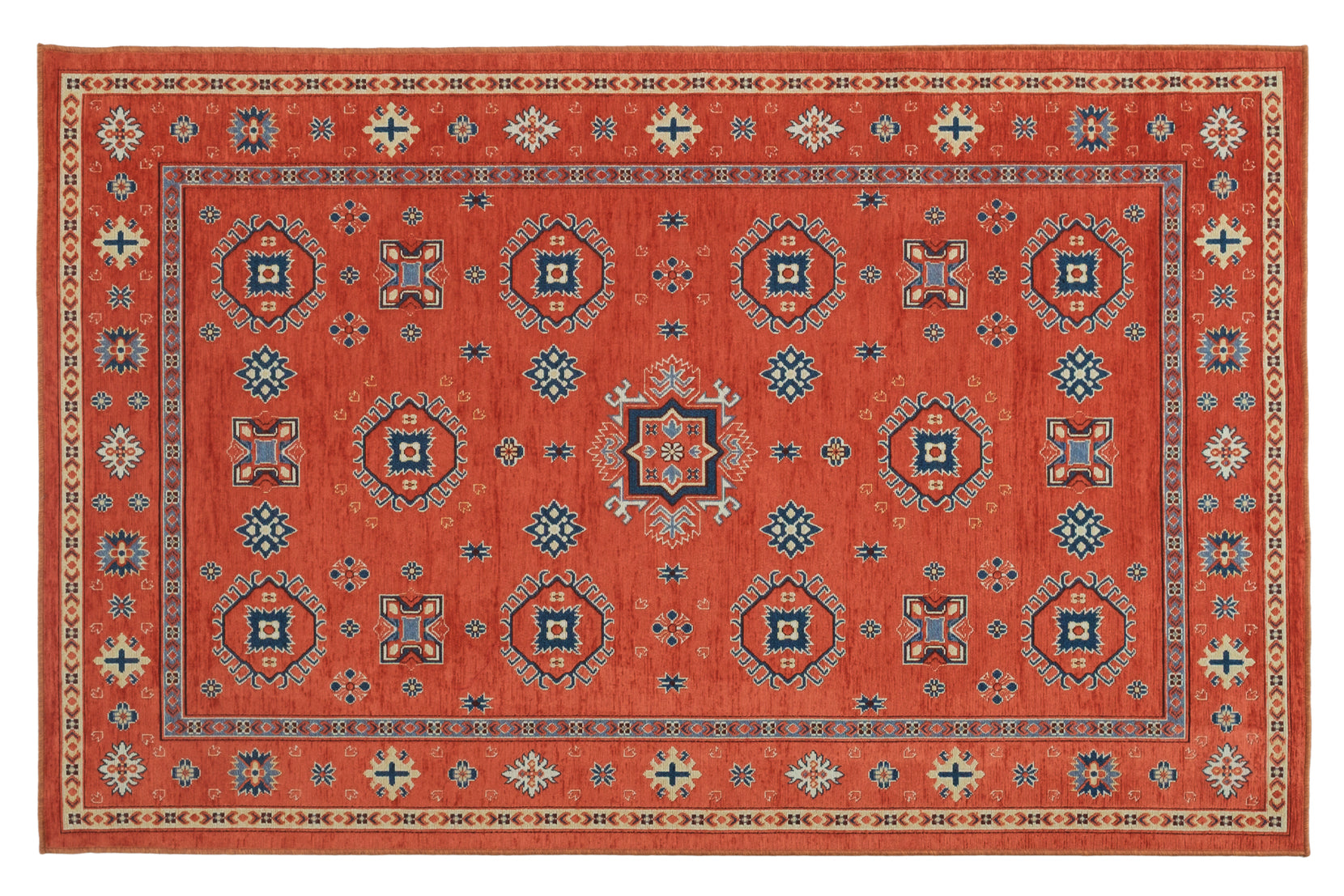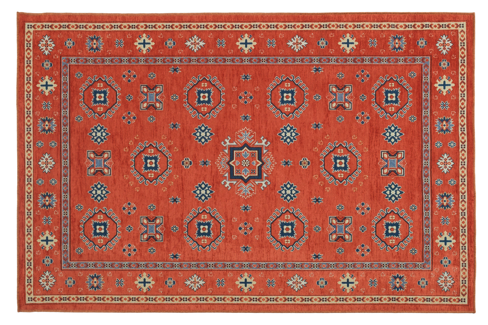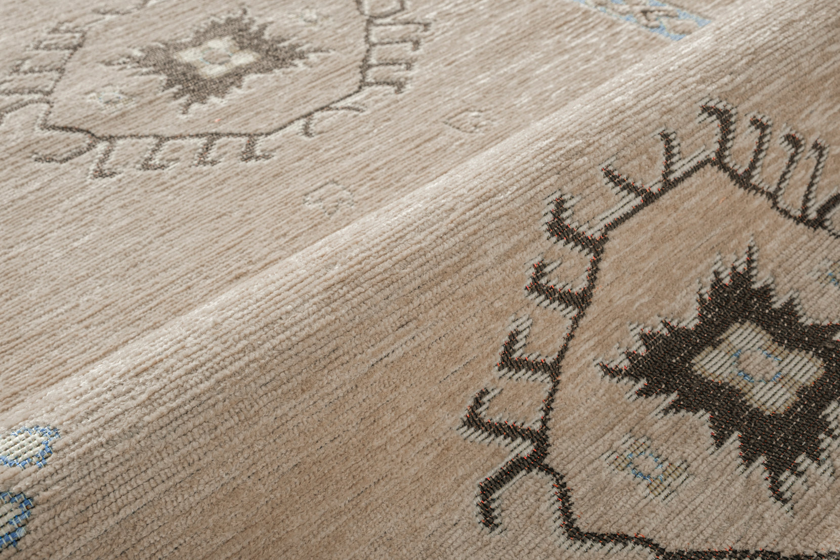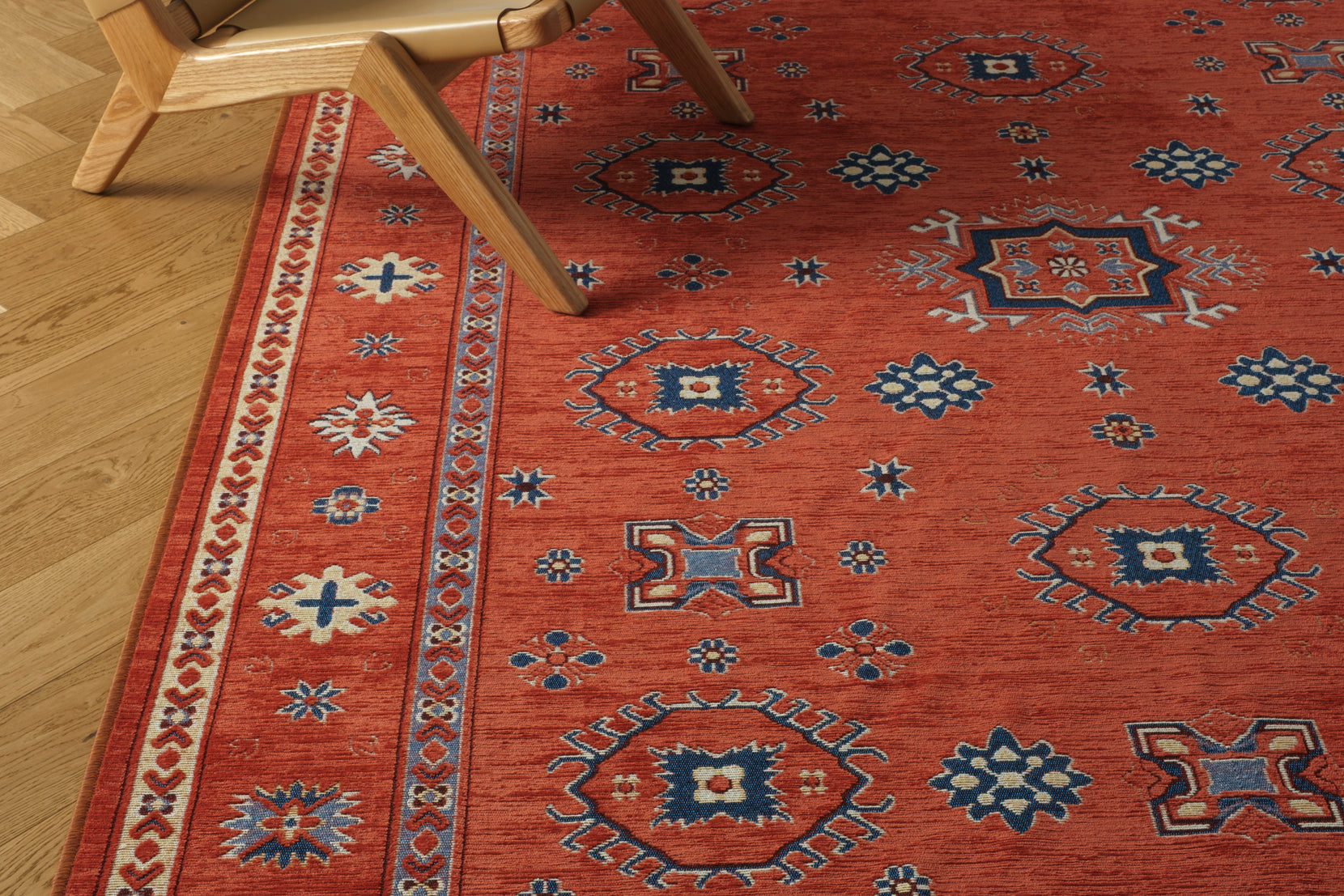 A modern take on antique designs, our washable Folk Collection is inspired by Turkish folk art. Our designers modernized both the construction—making it washable—and the design, by reimagining traditional elements in an abstracted form. These pieces are woven with soft polyester chenille whose signature texture feels fuzzy underfoot and adds movement to the design. Recessed motifs add more texture, creating a visual and tactile contrast between high and low.