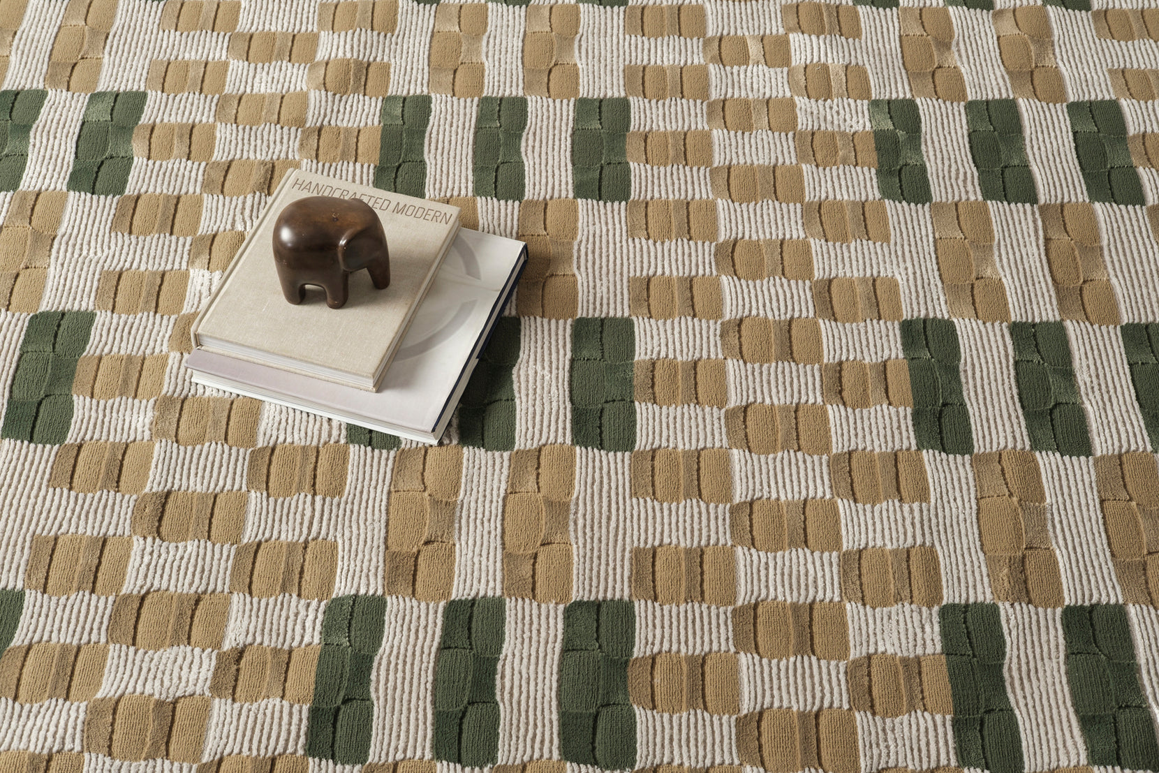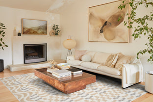The DesignOur washable Damita Collection is inspired by the 1997 music video Got 'til It's Gone, by Janet Jackson, Joni Mitchell, and Q-Tip. Visually, this video references the hot 1960's summer night party scene immortalized by Malian photographer Malick Sidibe. Dynamic geometries swoop and slither in these pieces, all done in earthy neutrals. Twist is a funky checkerboard, made up of smaller checkerboards and alternating stripes. Its vertical borders are lined in wavy, twisting half moons.