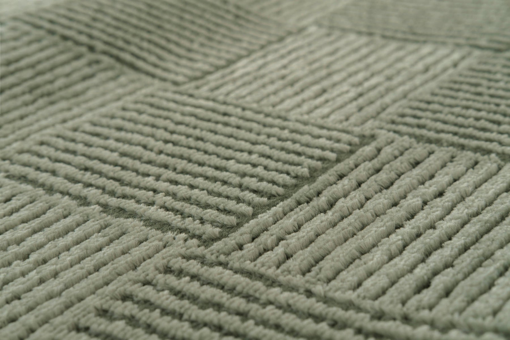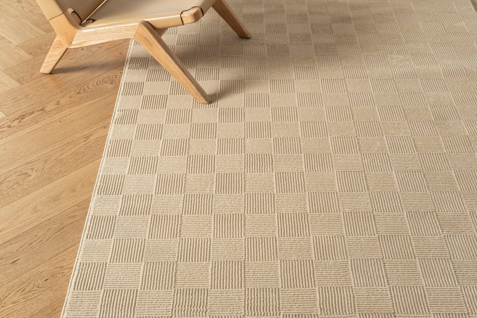 The DesignThe vessel rugs celebrate the art of basketweaving, drawing on intricate patterns and textures that have been passed through generations. Just as there are myriad techniques of rug weaving, there are many ways to weave a vessel. Each design's texture mimics the techniques of coiling, plaiting and twining, achieved by juxtaposing raised and shrunken parts of the fiber. Willow's all-over design features thin tone-on-tone wiggly stripes that create a checkered look with a classic plain weave.