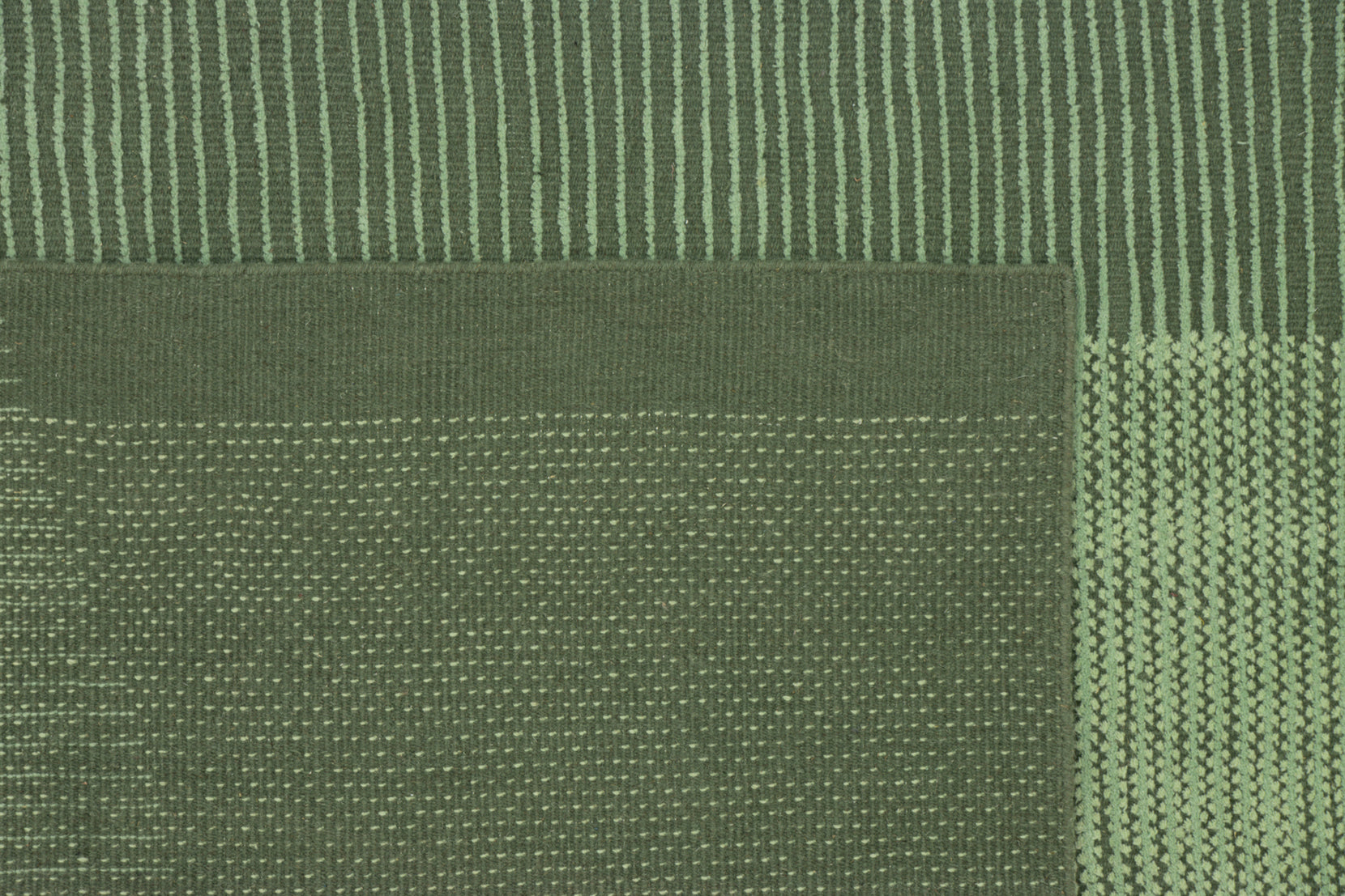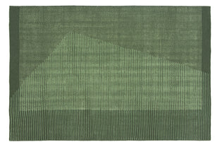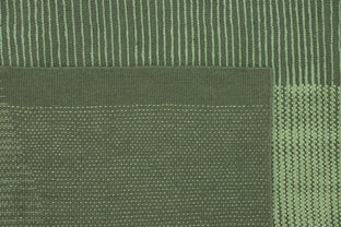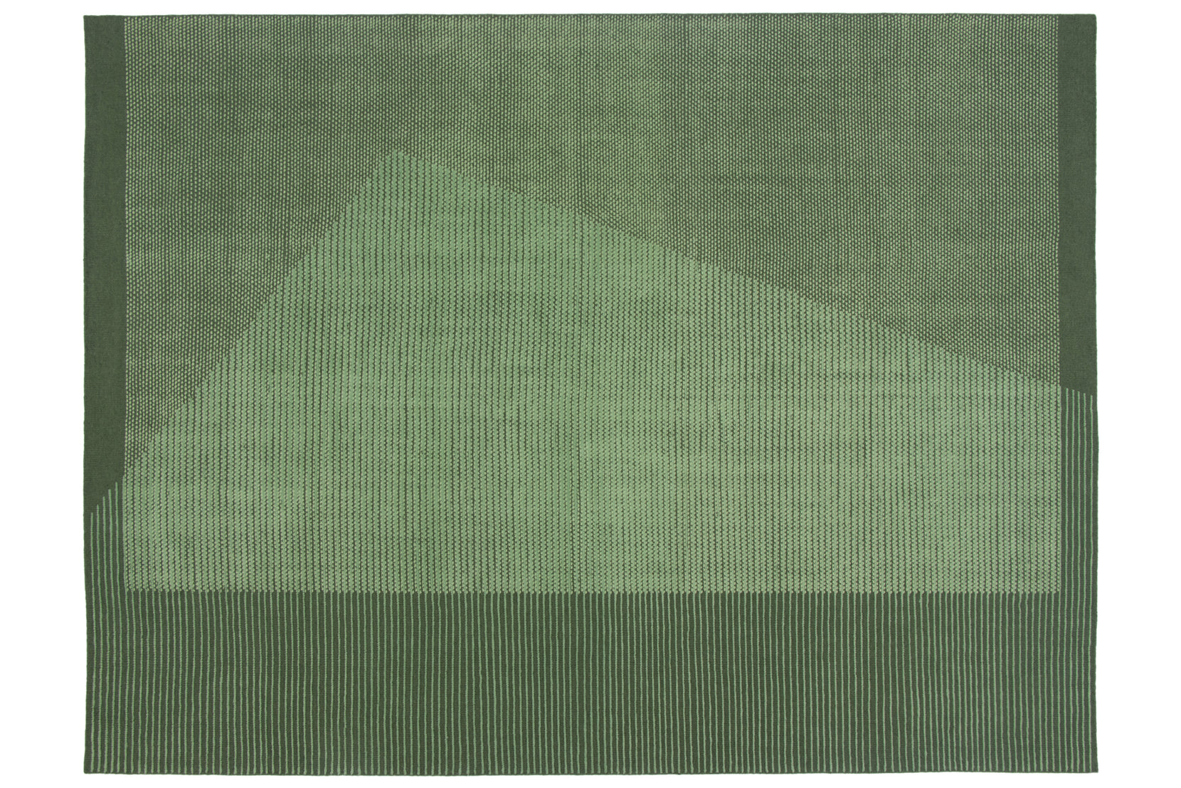 Kusa's various green dots, stripes, and solids intersect to create a dynamic angular shape.
