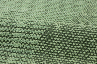Soft and washable wool has a hydrophobic layer which repels dust and dirt, as well as lanolin, which provides its trademark luster and protects the fiber from breaking or shedding. In this piece, wool is woven onto a polyester warp for durability.