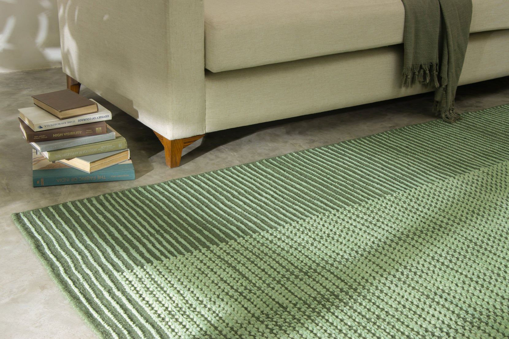 Dotto's hand-knotted washable wool pile forms a textural, geometric design. To create the patchwork of overlapping lines and dots, our team took inspiration from the practice of Boro, a resourceful Japanese mending style that repurposes textiles to create something new.