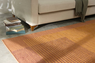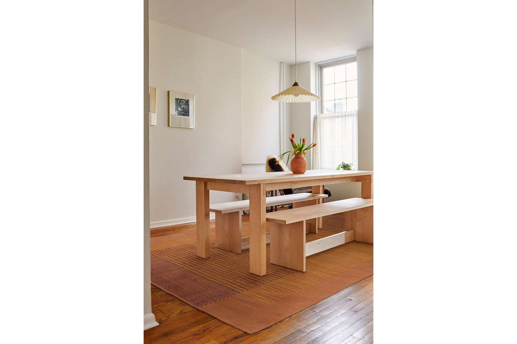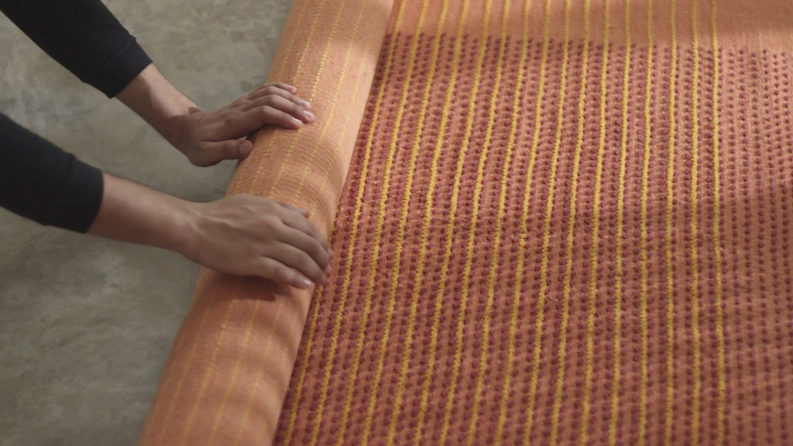 Dotto's hand-knotted washable wool pile forms a textural, geometric design. To create the patchwork of overlapping lines and dots, our team took inspiration from the practice of Boro, a resourceful Japanese mending style that repurposes textiles to create something new.