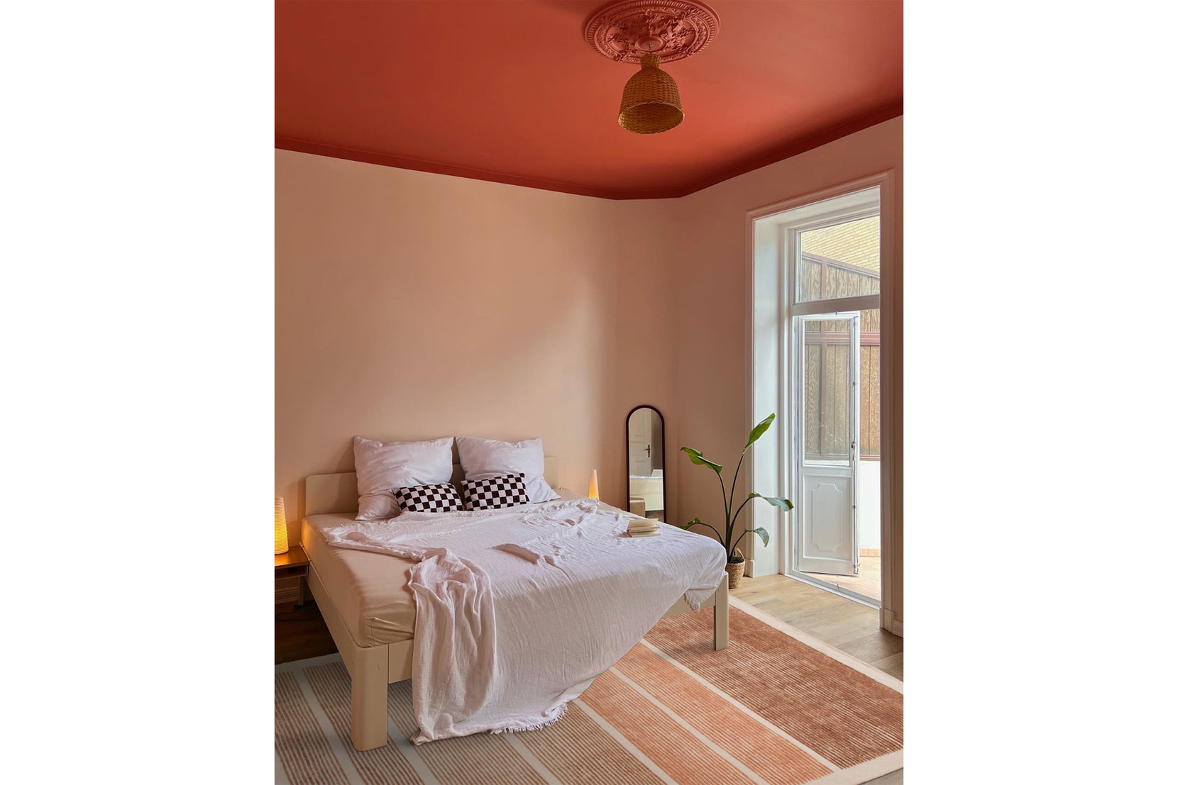 - Color palette: cantaloupe, salmon pink, coral, terracotta, faded brick