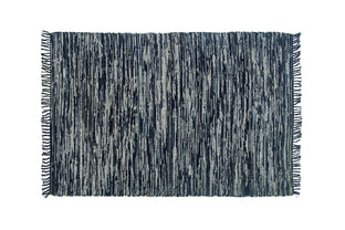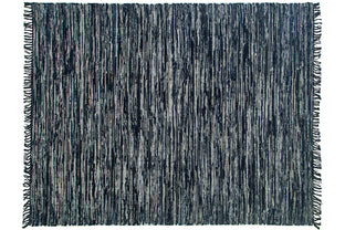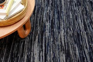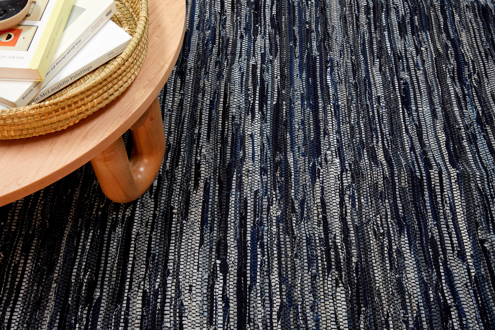This collection was constructed with a rag rug technique, which is an age-old method of transforming textiles into something new. A medium-blue field with striations of lighter and darker tones, Bootcut is a basic with depth.
